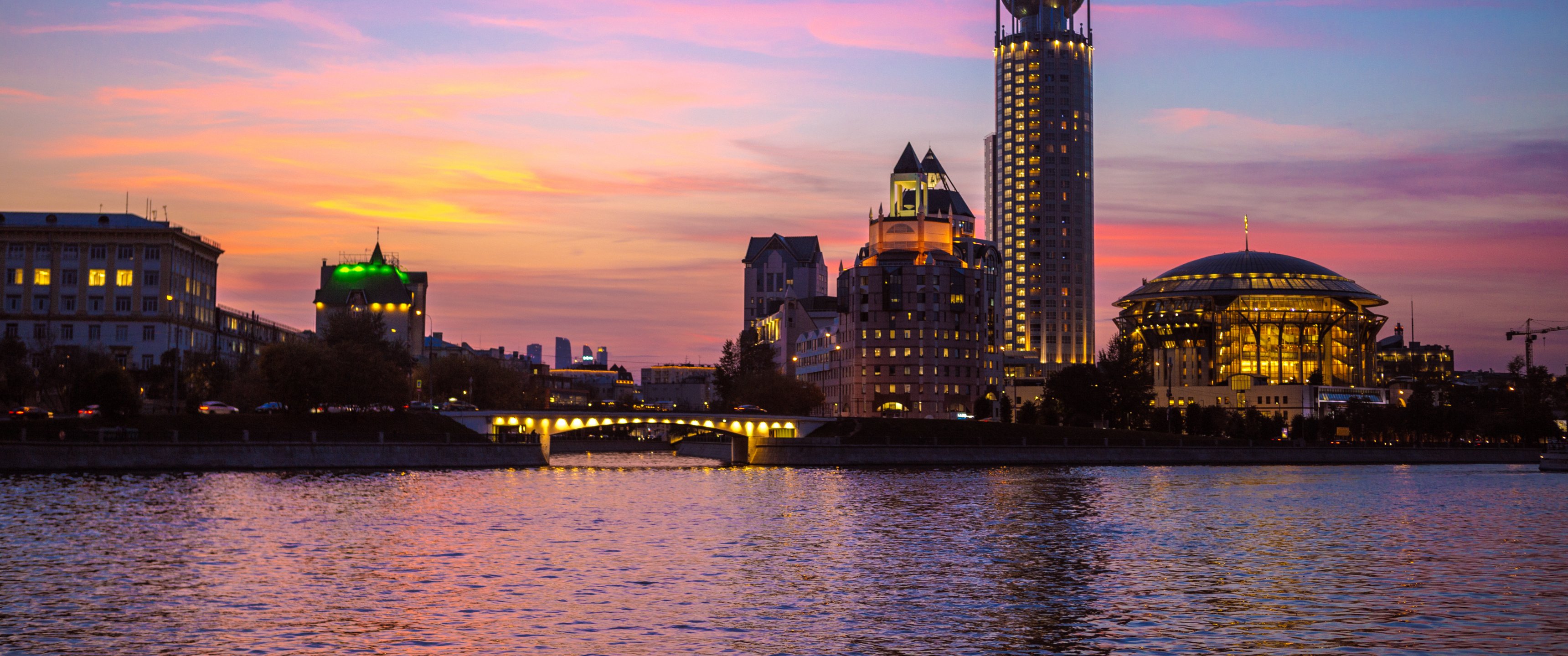 Wallpaper: Moscow, Moscow river, evening - 3440x1440