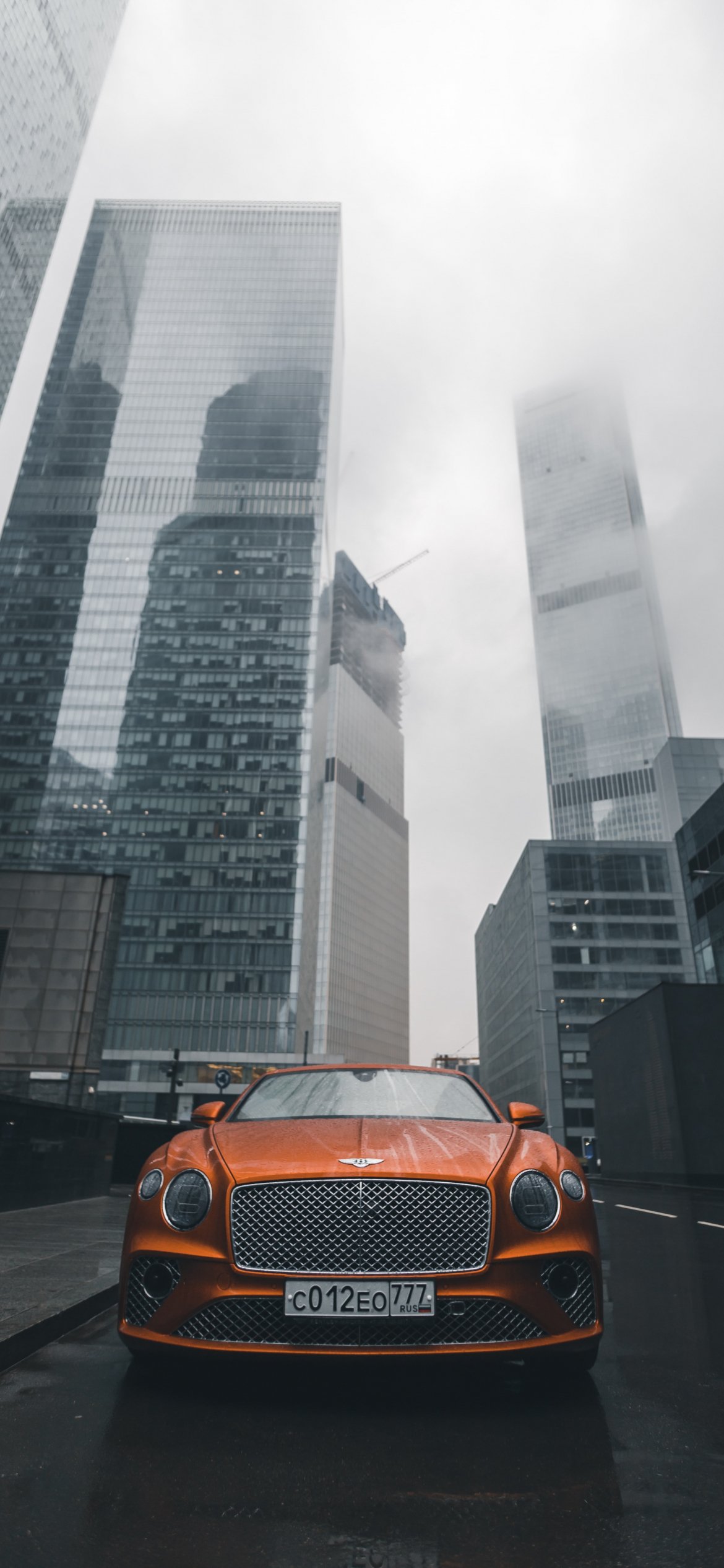 Wallpaper: Bentley, city, fog - 1170x2532