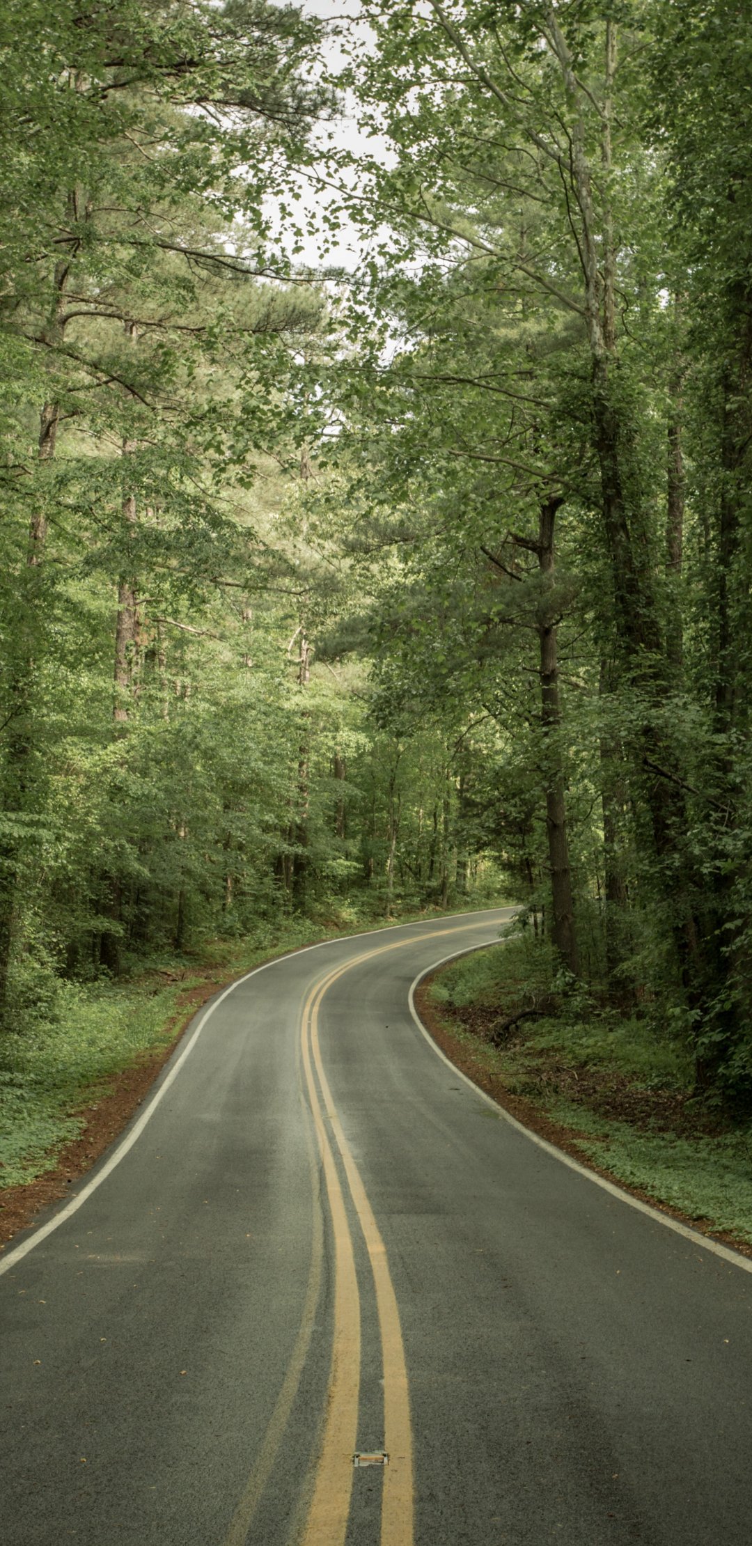 road, forest, green Wallpaper 1080x2220