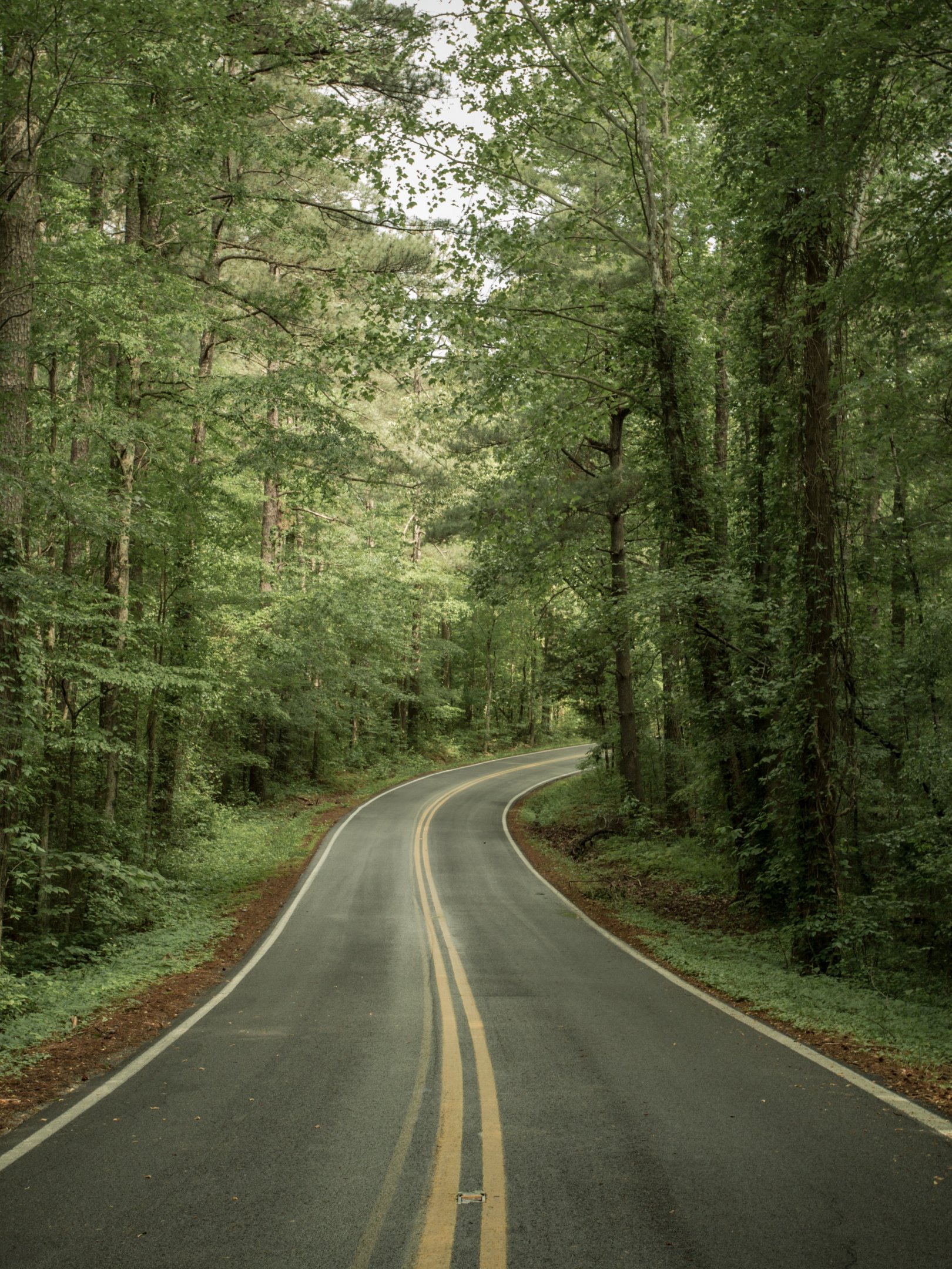 road, forest, green Wallpaper 1620x2160