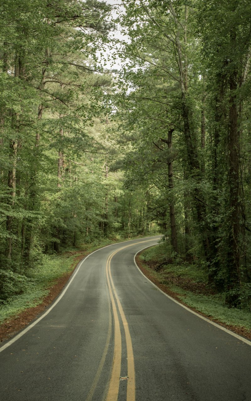 road, forest, green Wallpaper 800x1280