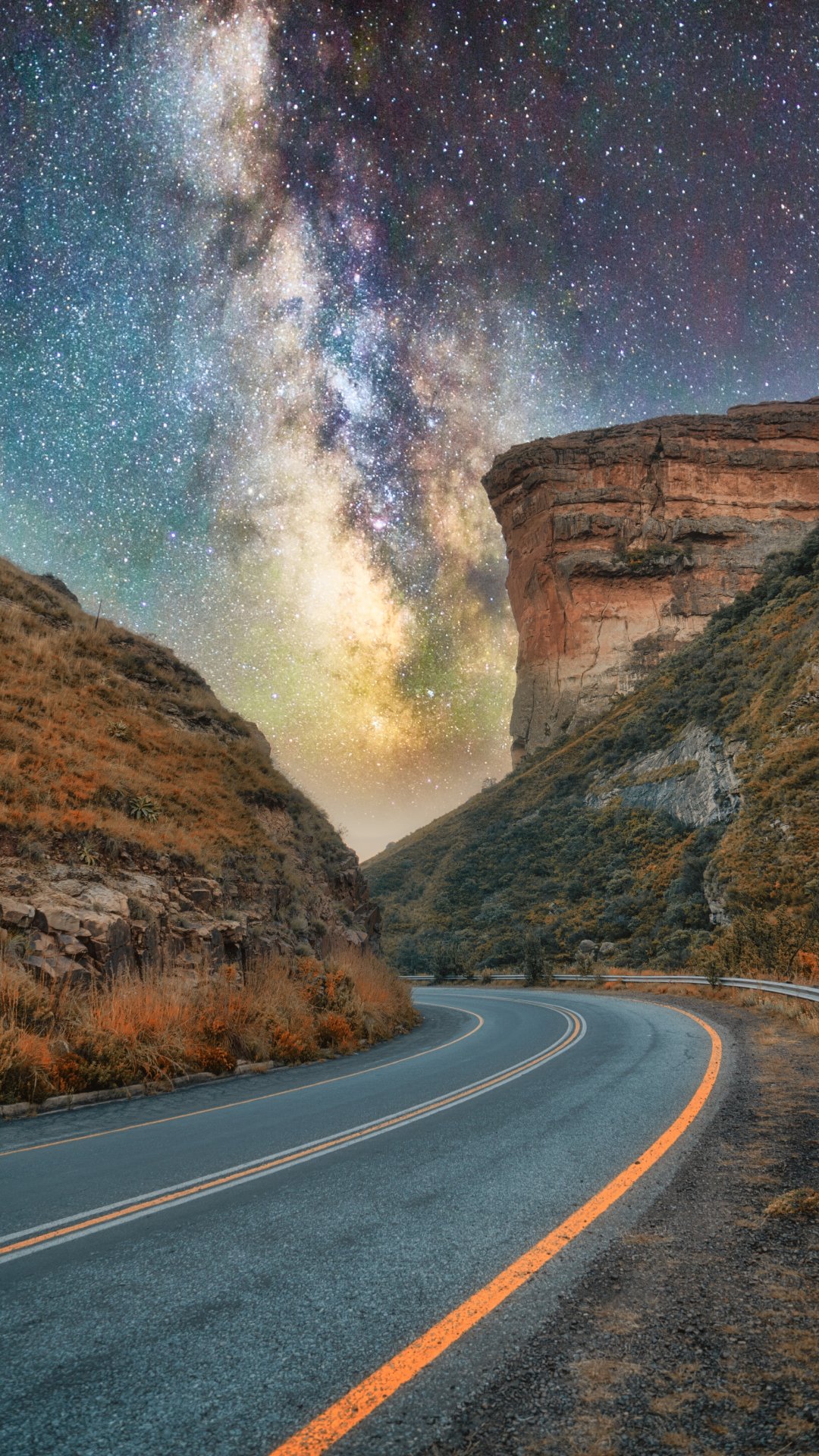 Wallpaper: road, night, starry sky - 1080x1920