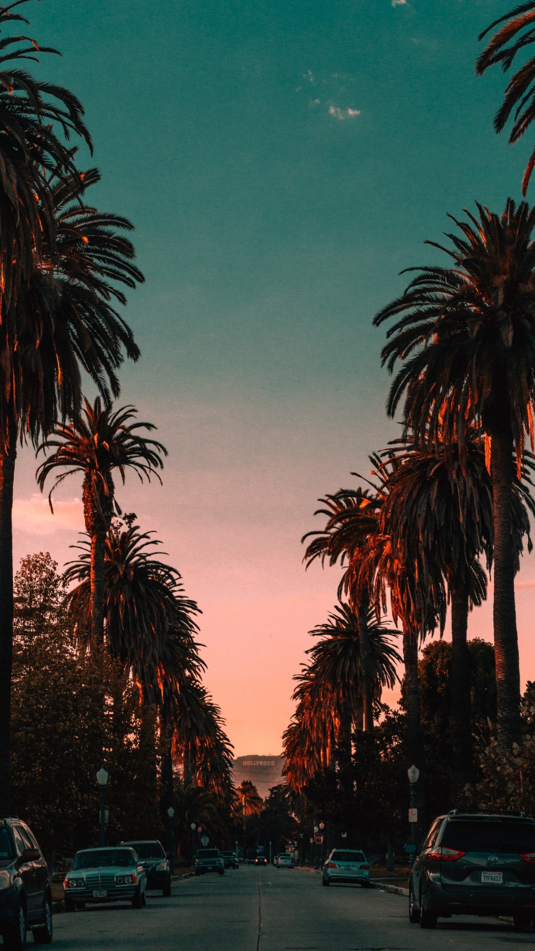 Wallpaper: palm tree, road, sunset - 1080x1920