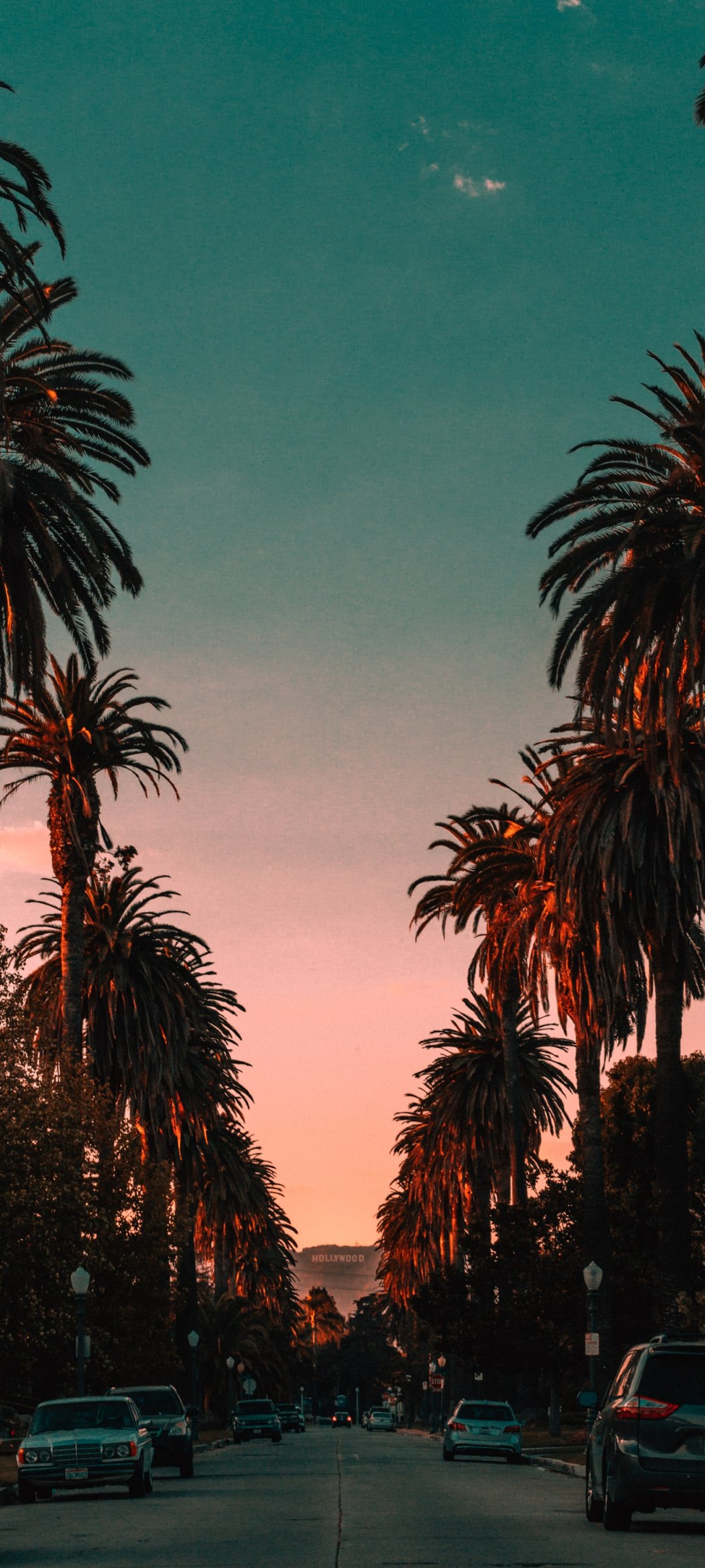 Wallpaper: palm tree, road, sunset - 1080x2400