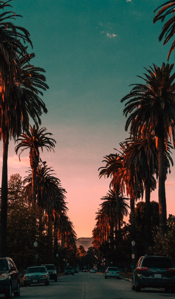 Wallpaper: palm tree, road, sunset - 600x1024