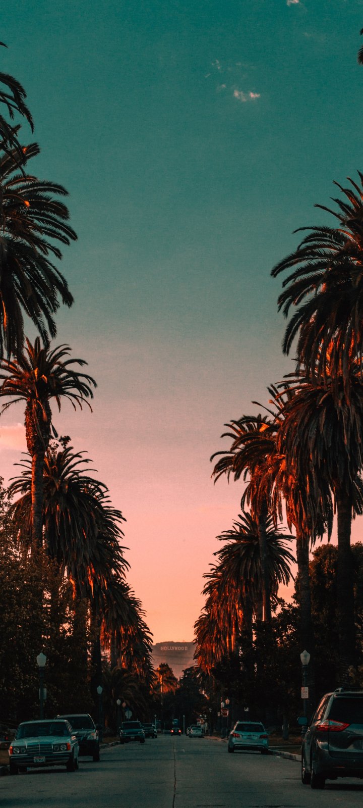Wallpaper: palm tree, road, sunset - 720x1600