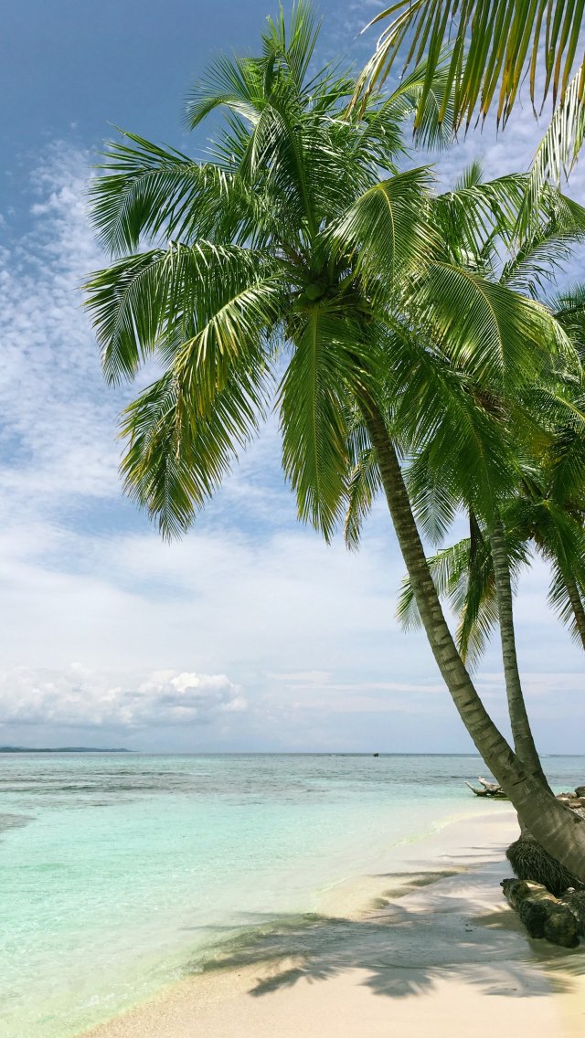 Wallpaper: beach, sea, palm trees - 640x1136