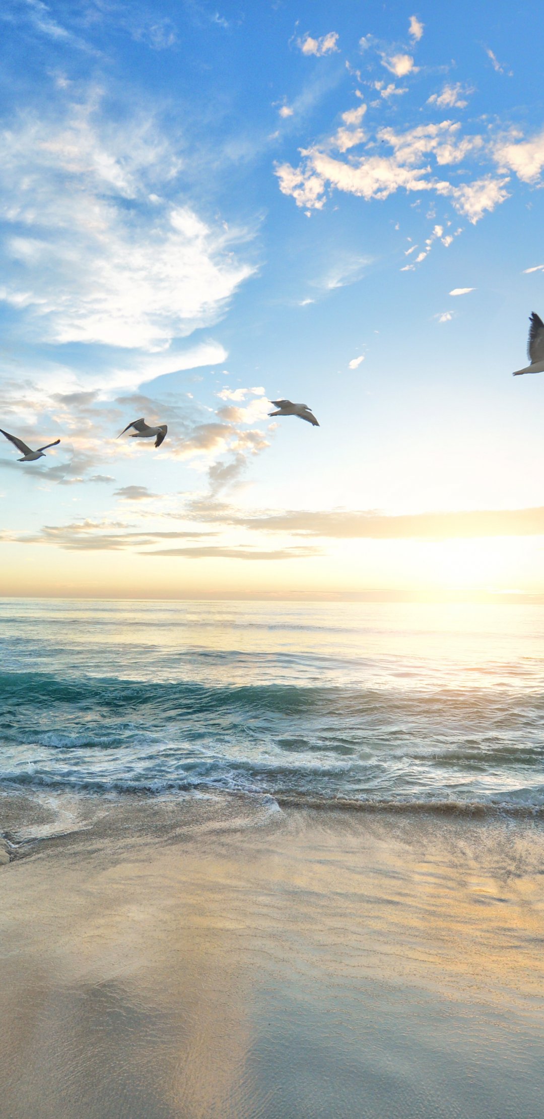 Wallpaper: dawn, sea, beach - 1080x2220