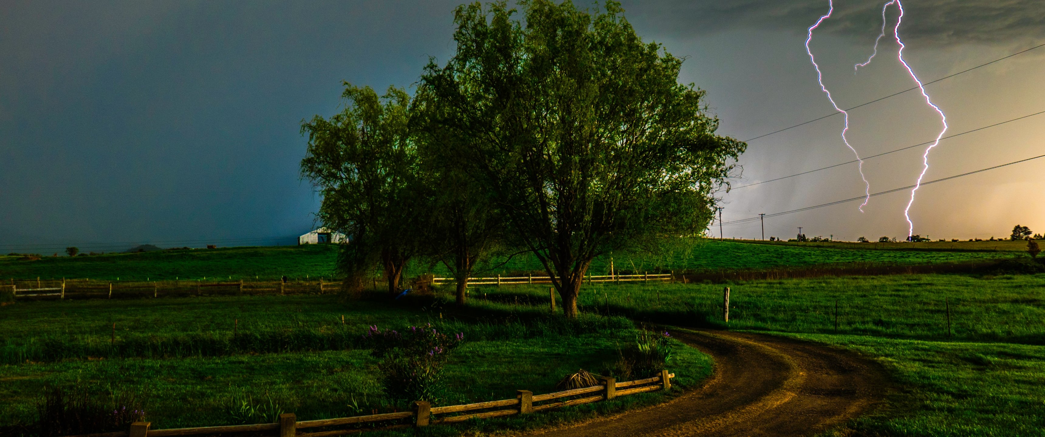 Wallpaper: thunderstorm, lightning, bad weather - 3440x1440