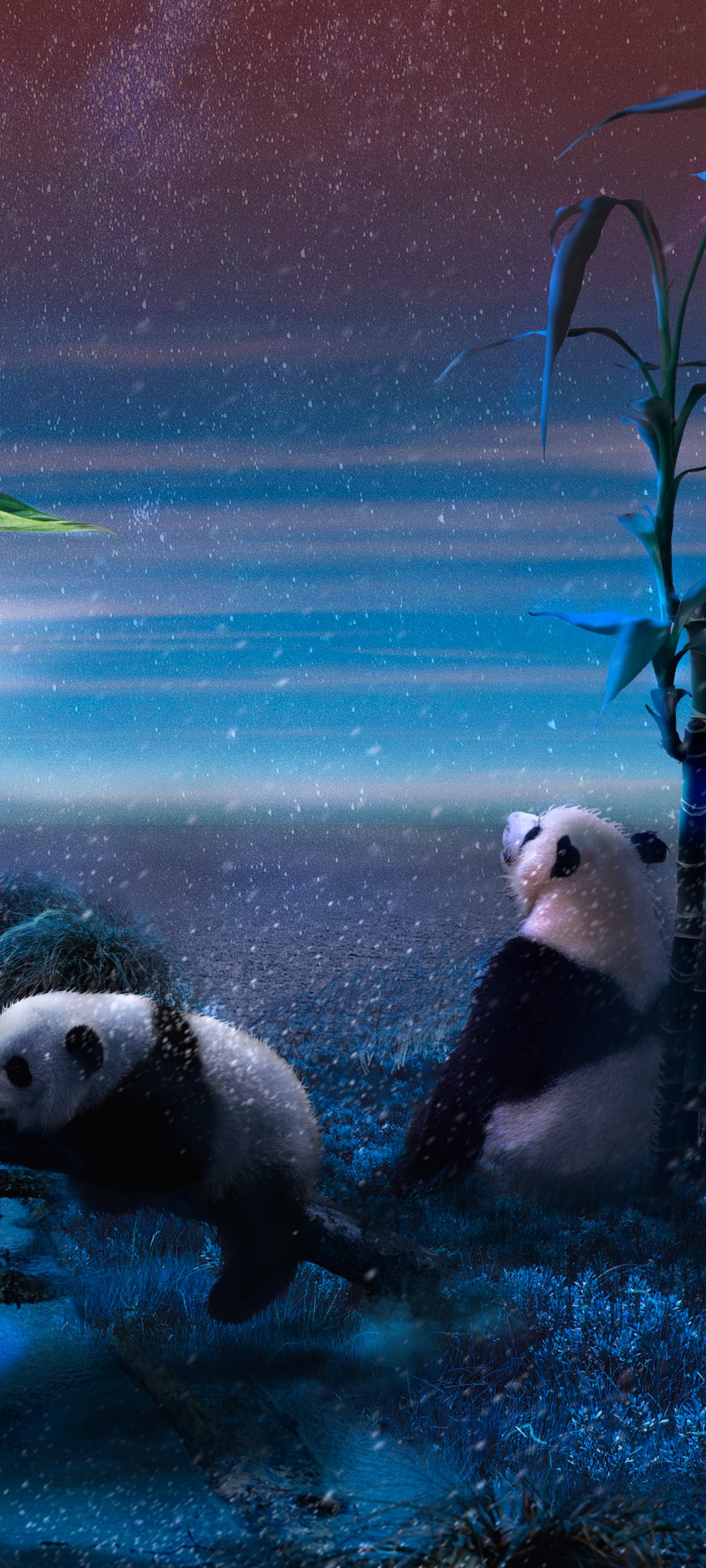 Wallpaper: panda, blue, snow - 1080x2400