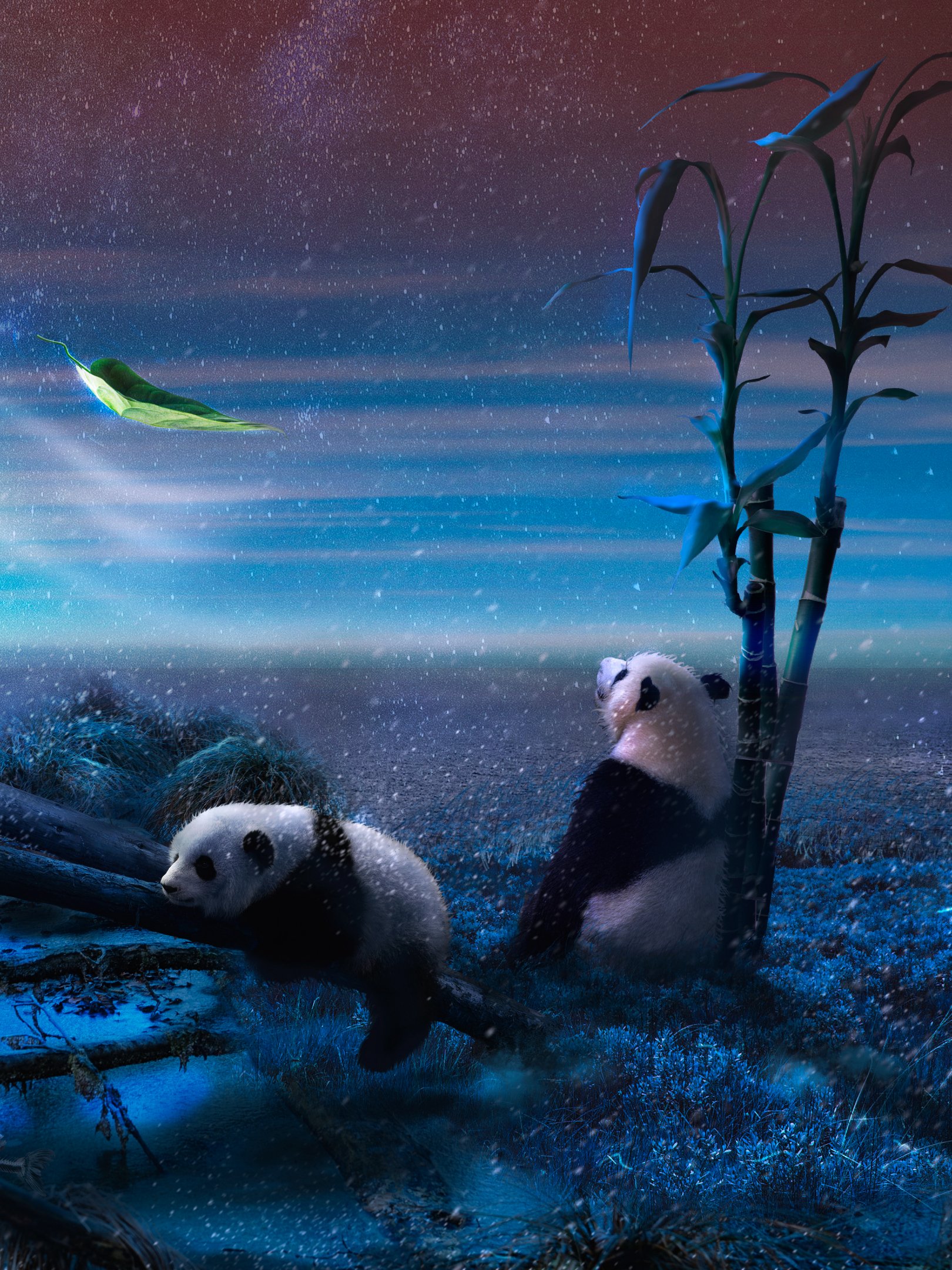 Wallpaper: panda, blue, snow - 1620x2160