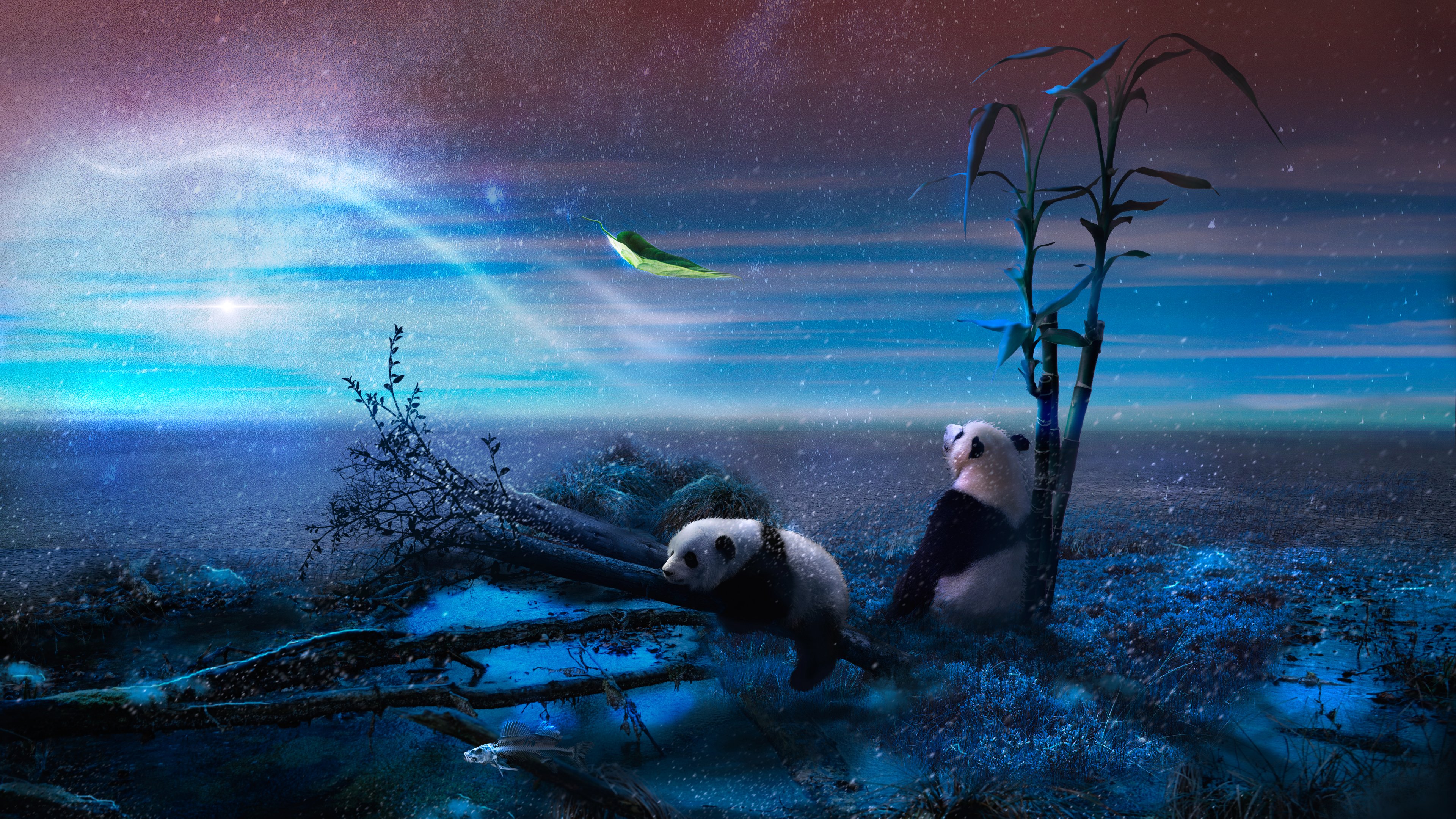Wallpaper: panda, blue, snow - 3840x2160