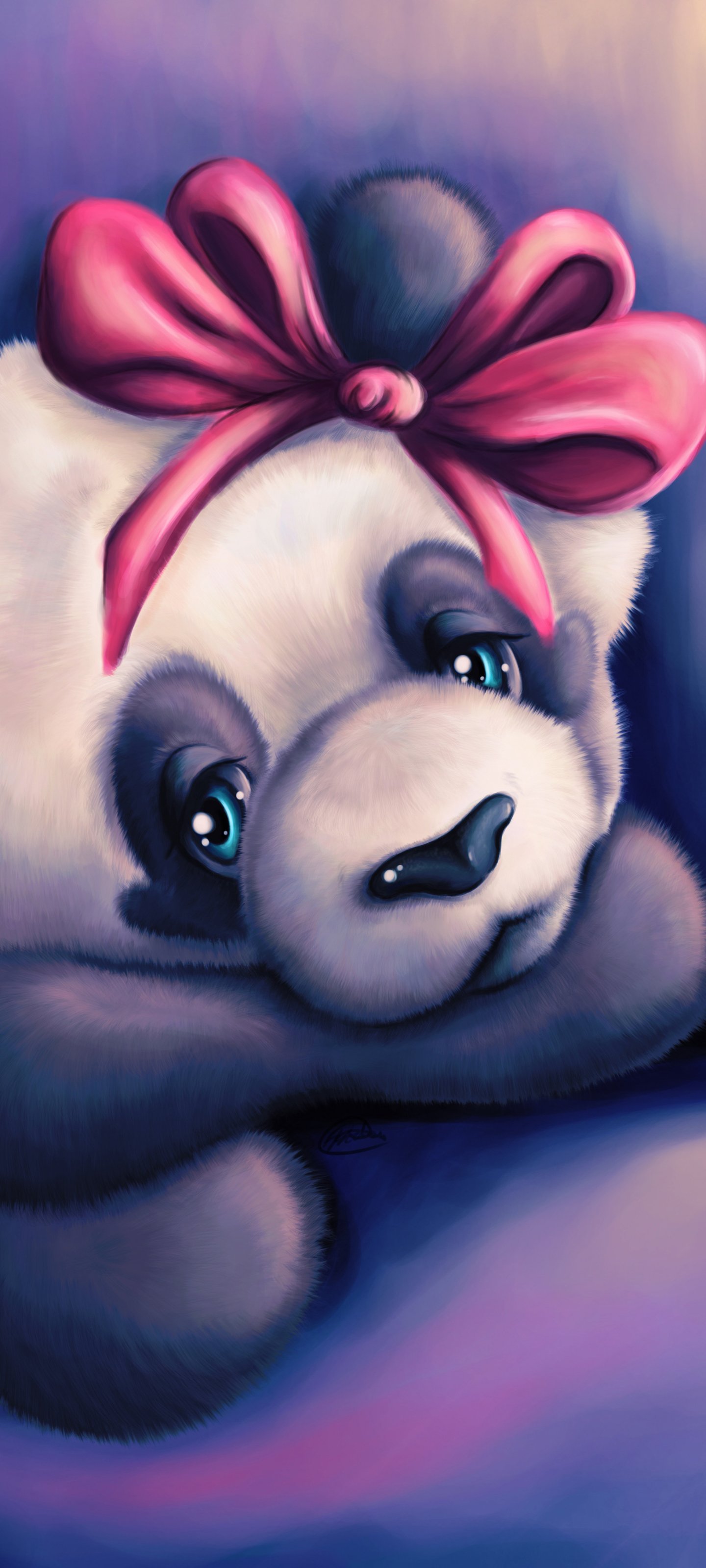 Wallpaper: panda, purple - 1440x3200