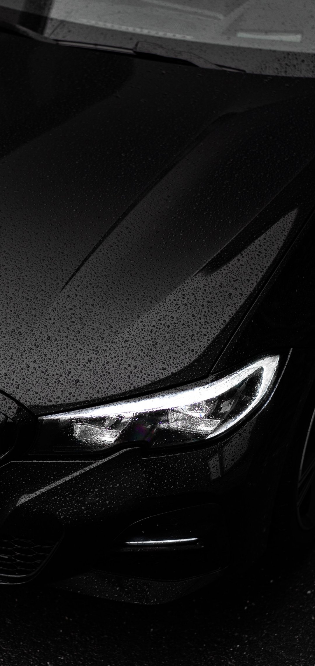 Wallpaper: black bmw, headlight, hood - 1080x2280