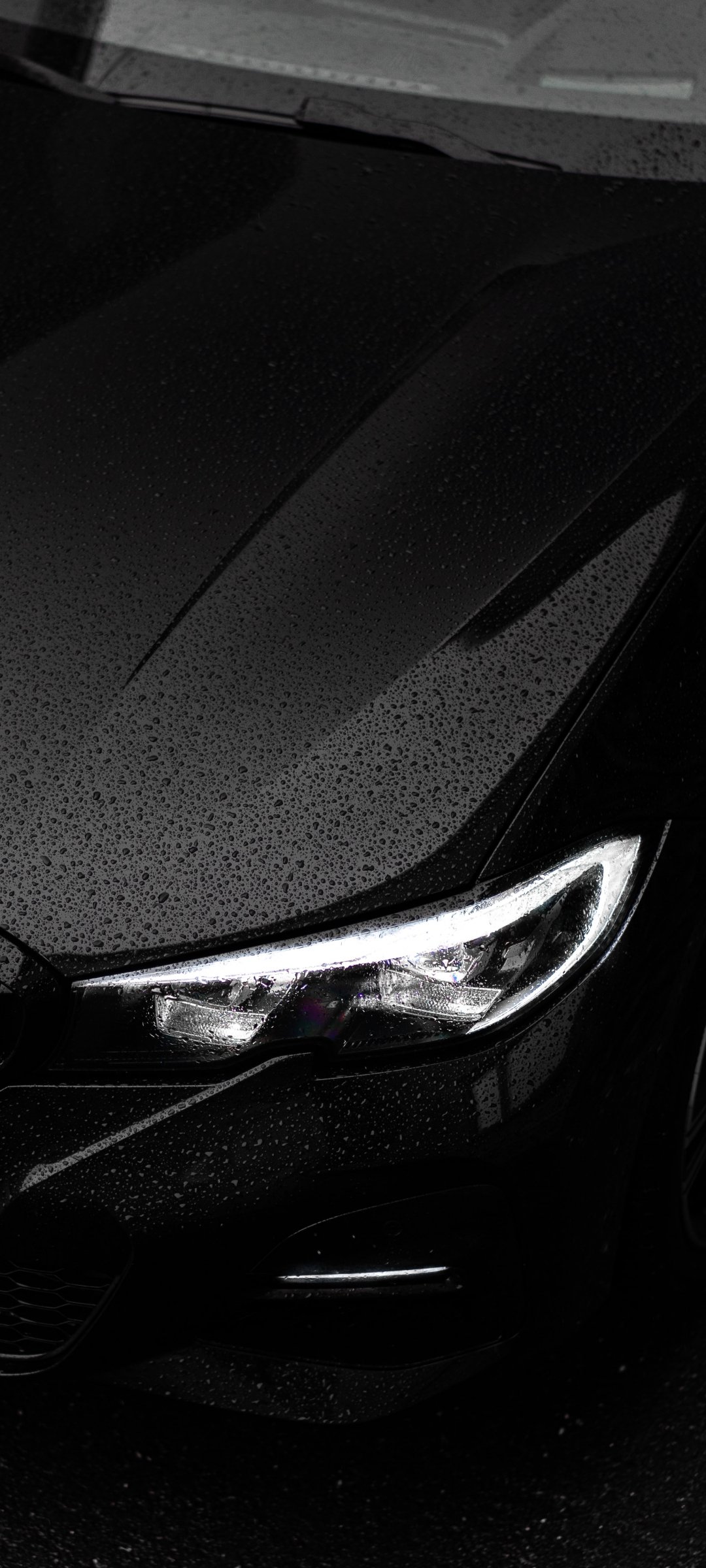 Wallpaper: black bmw, headlight, hood - 1080x2400