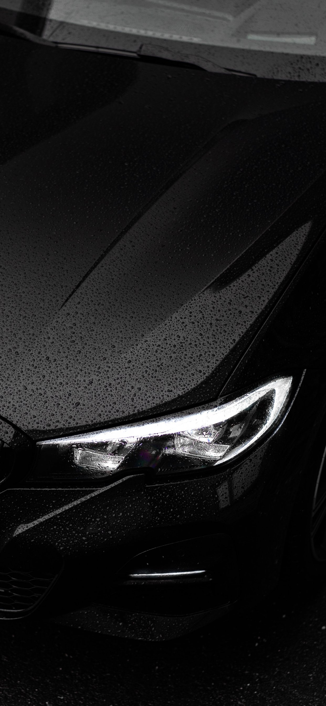 Wallpaper: black bmw, headlight, hood - 1242x2688