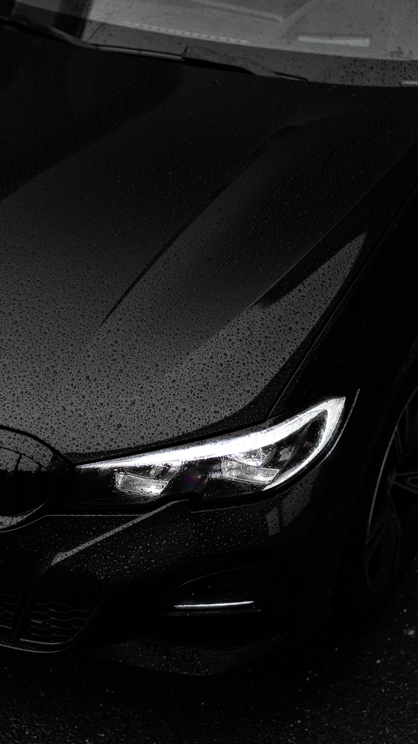 Wallpaper: black bmw, headlight, hood - 1440x2560