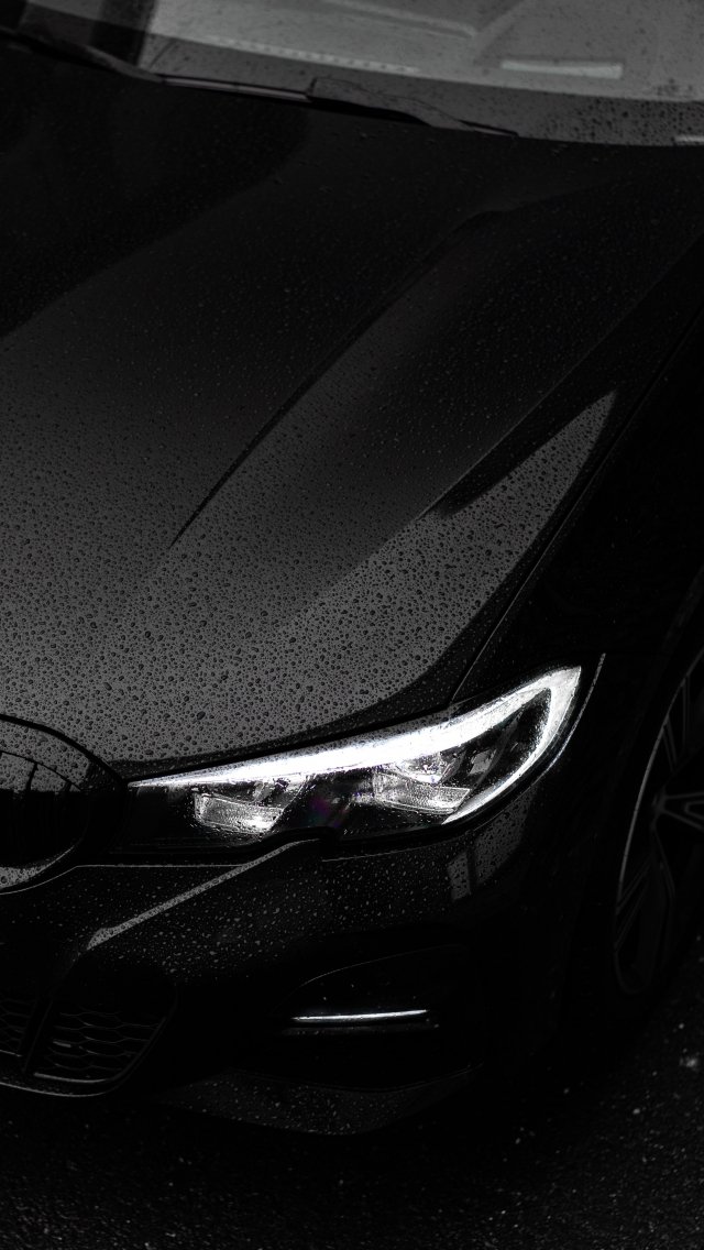Wallpaper: black bmw, headlight, hood - 640x1136