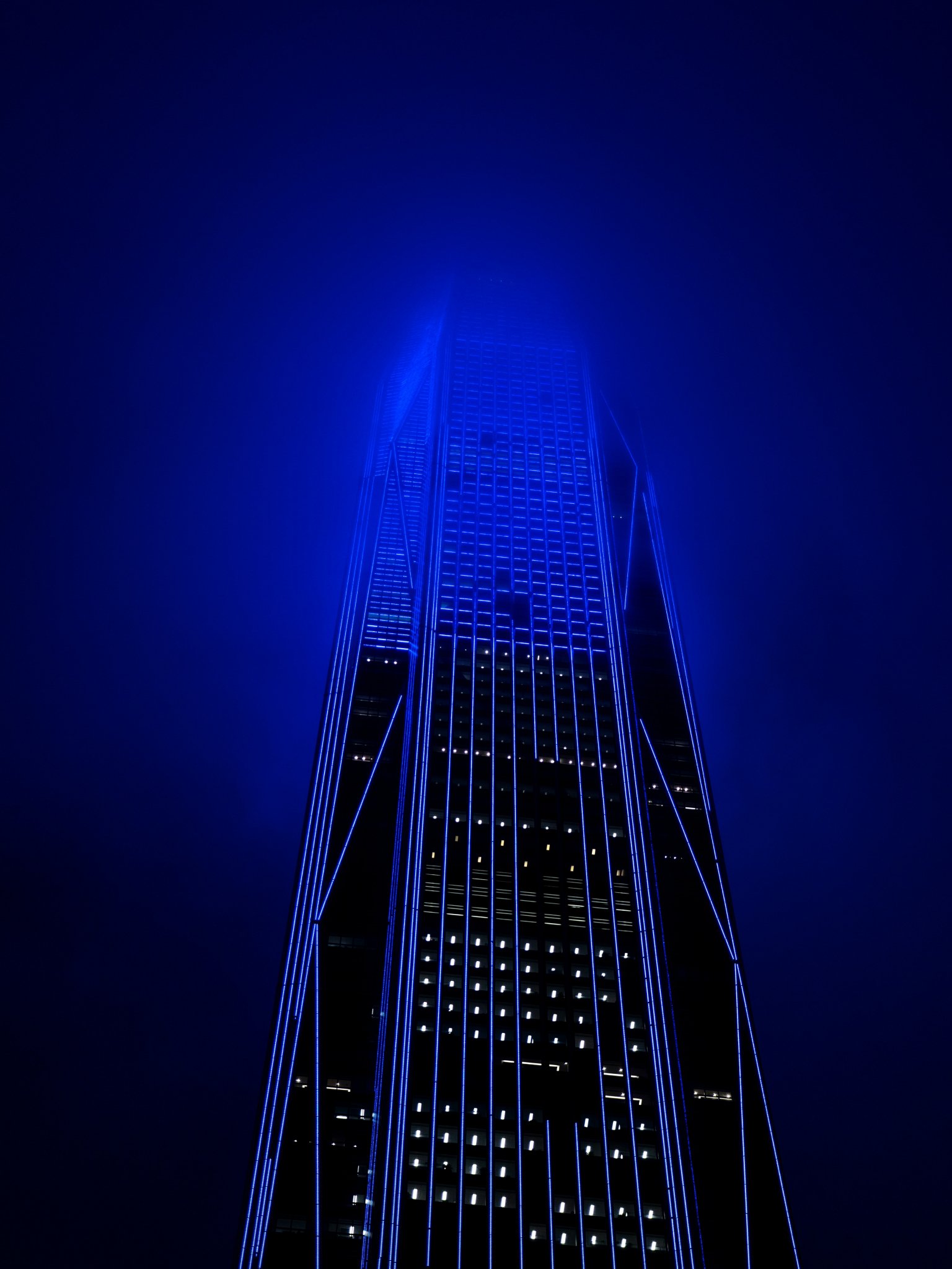Wallpaper: skyscraper, night, neon - 1536x2048