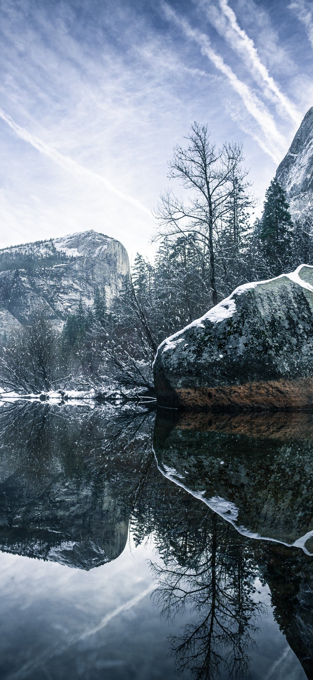 Wallpaper: winter, reflection, gray - 1080x2340