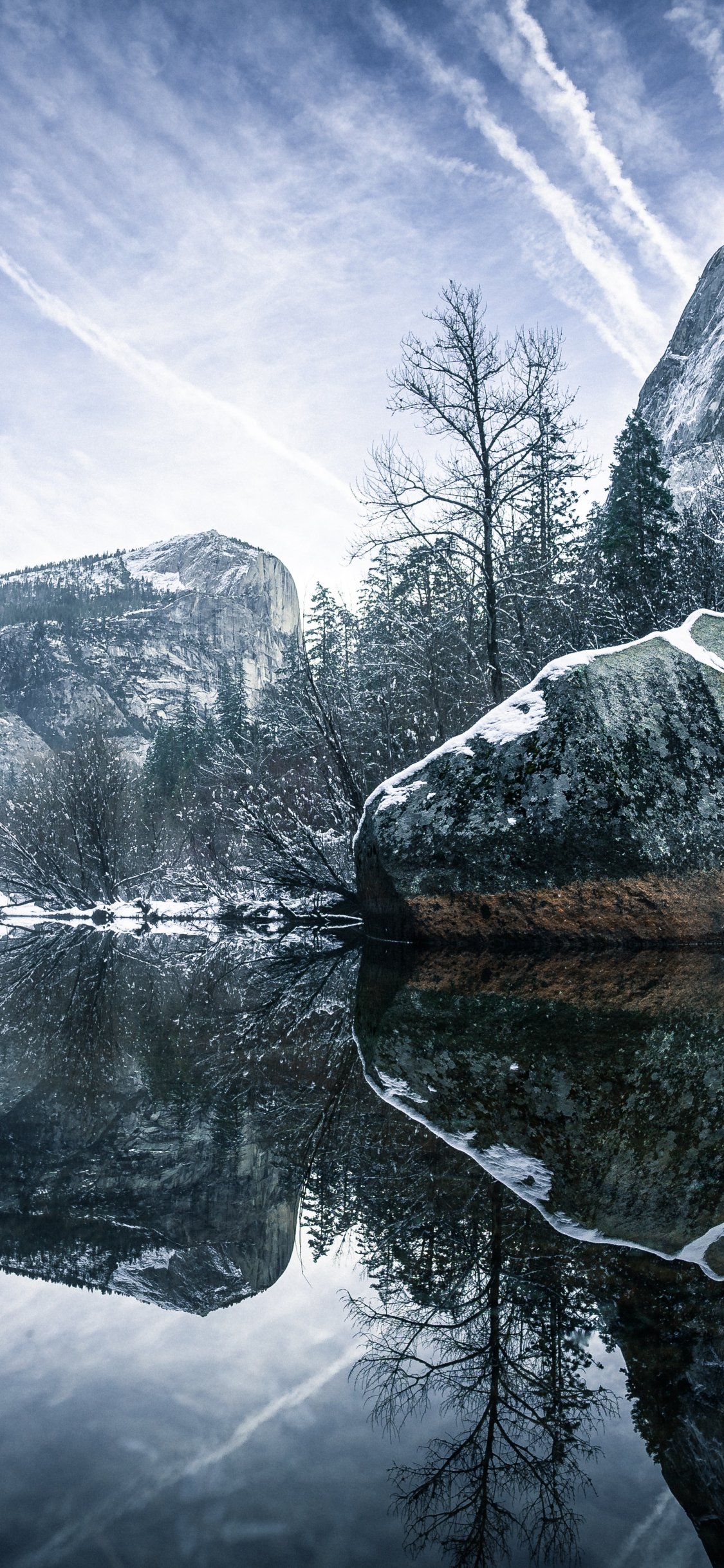 Wallpaper: winter, reflection, gray - 1125x2436