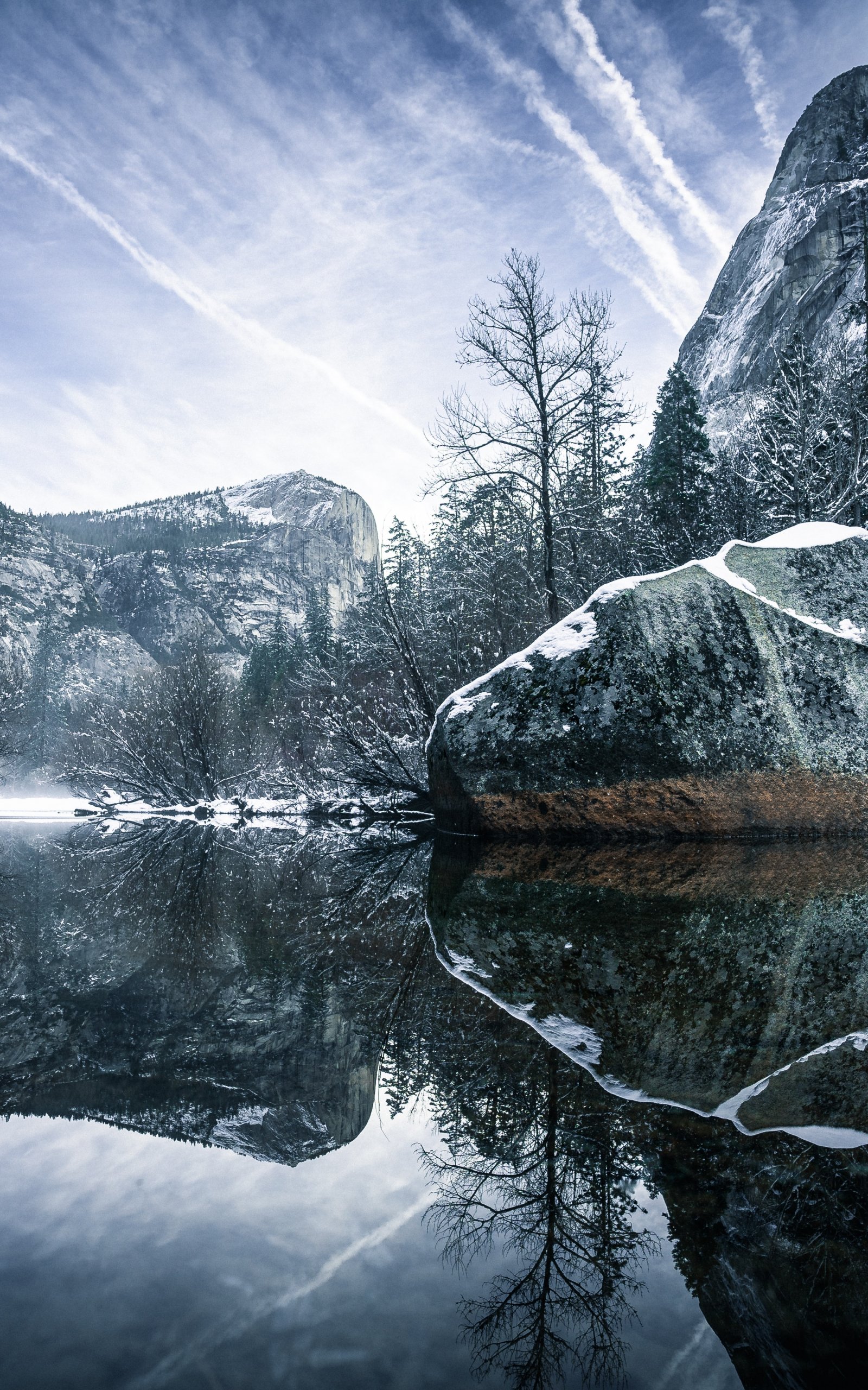 Wallpaper: winter, reflection, gray - 1600x2560