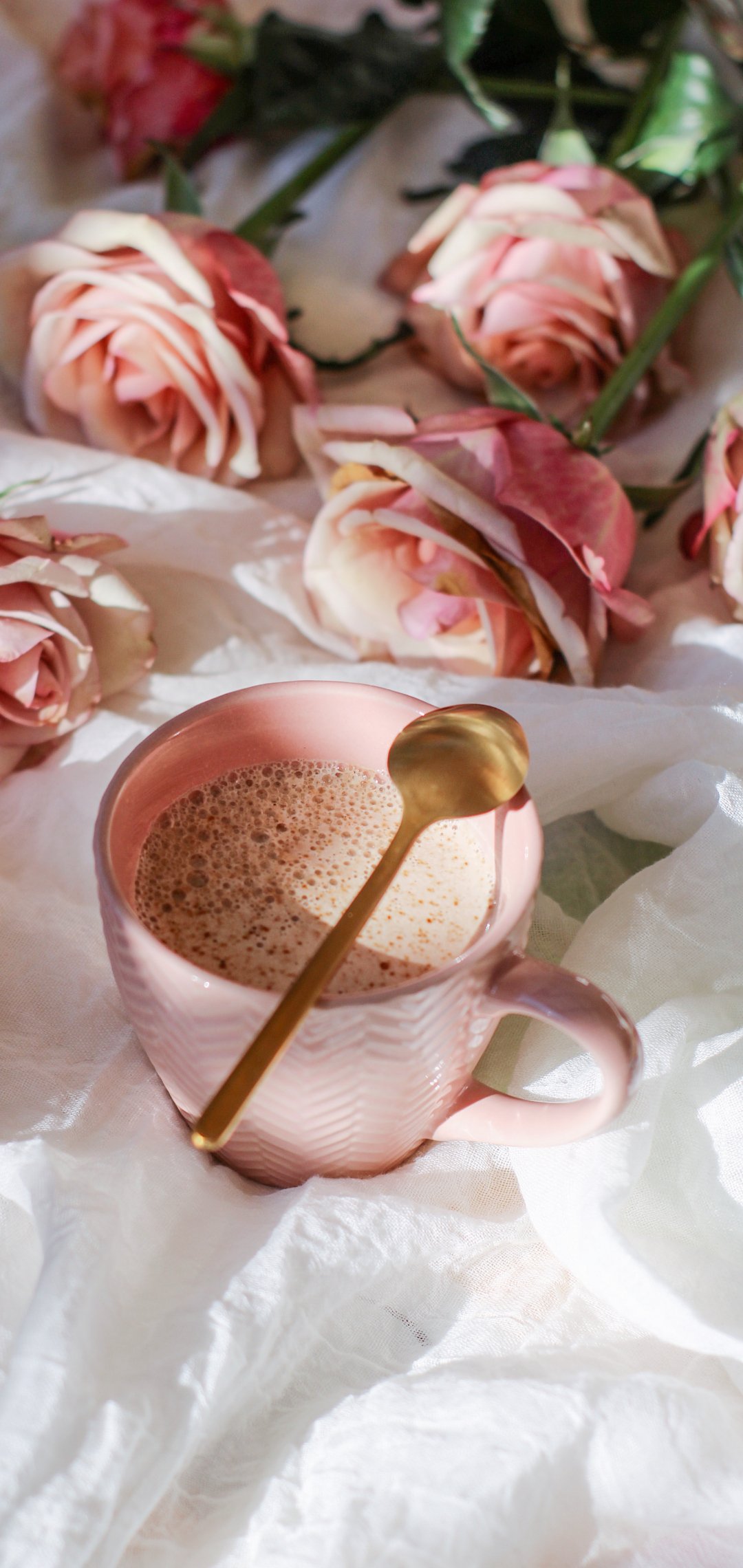 Wallpaper: coffee cup, aesthetic pink - 1080x2280