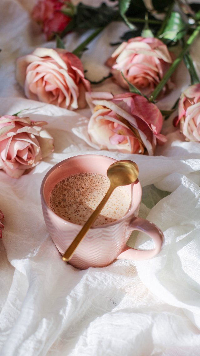 Wallpaper: coffee cup, aesthetic pink - 640x1136