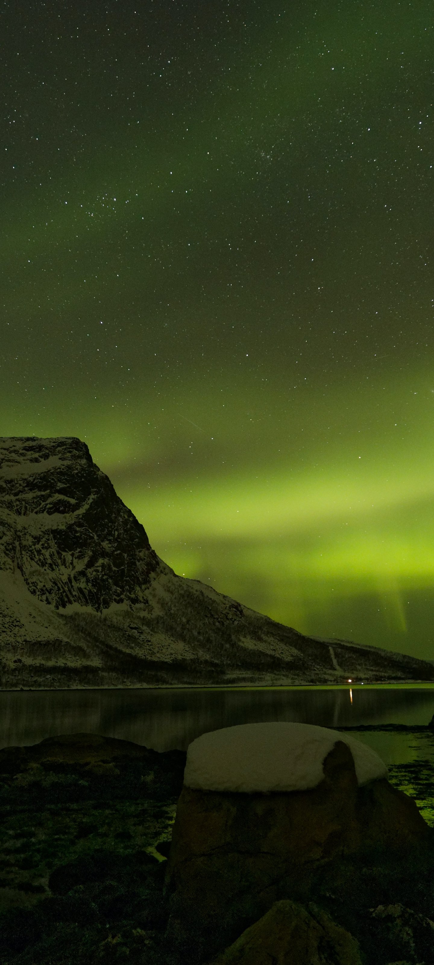 Wallpaper: northern lights, night, green - 1440x3200