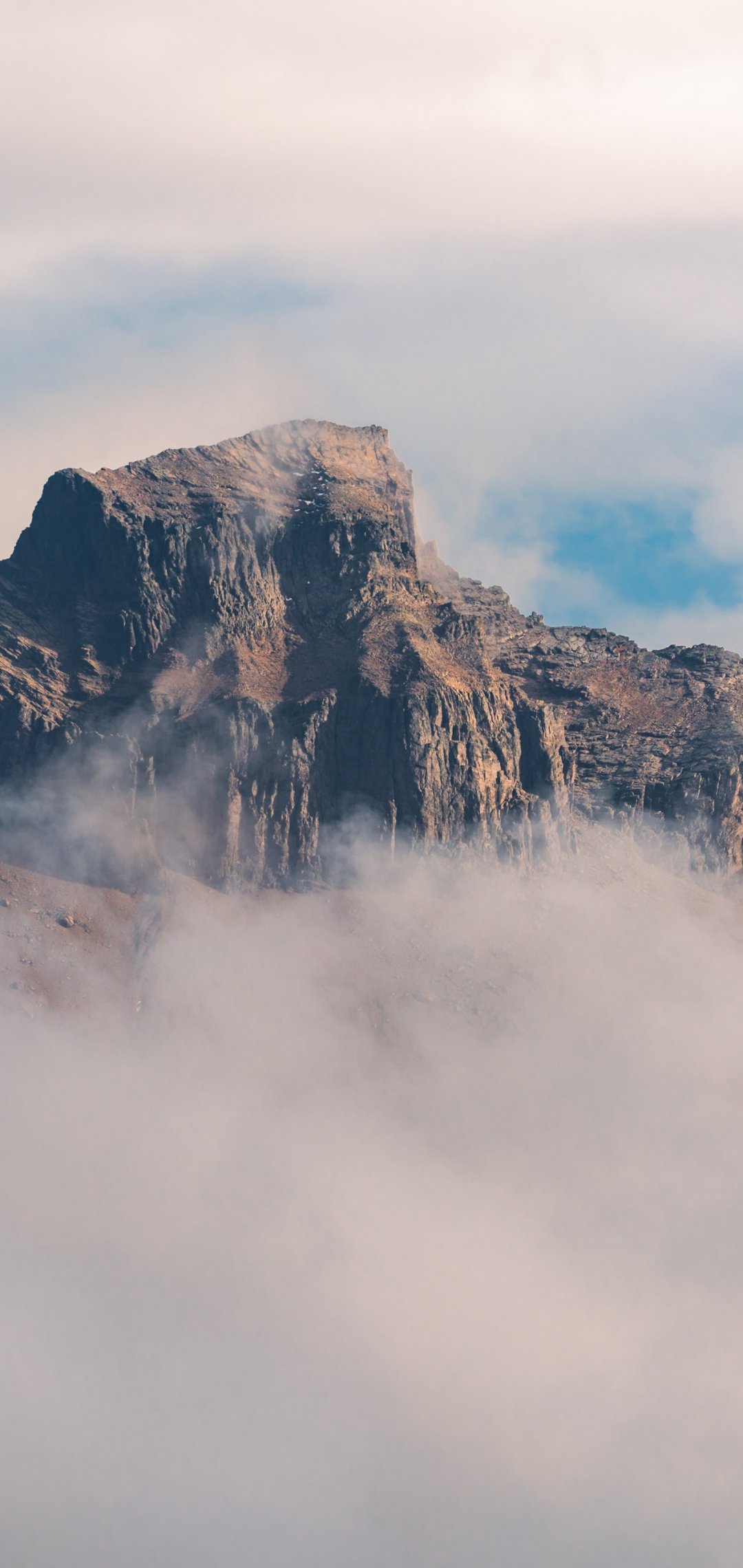 Wallpaper: fog, mountain range, clouds - 1080x2280