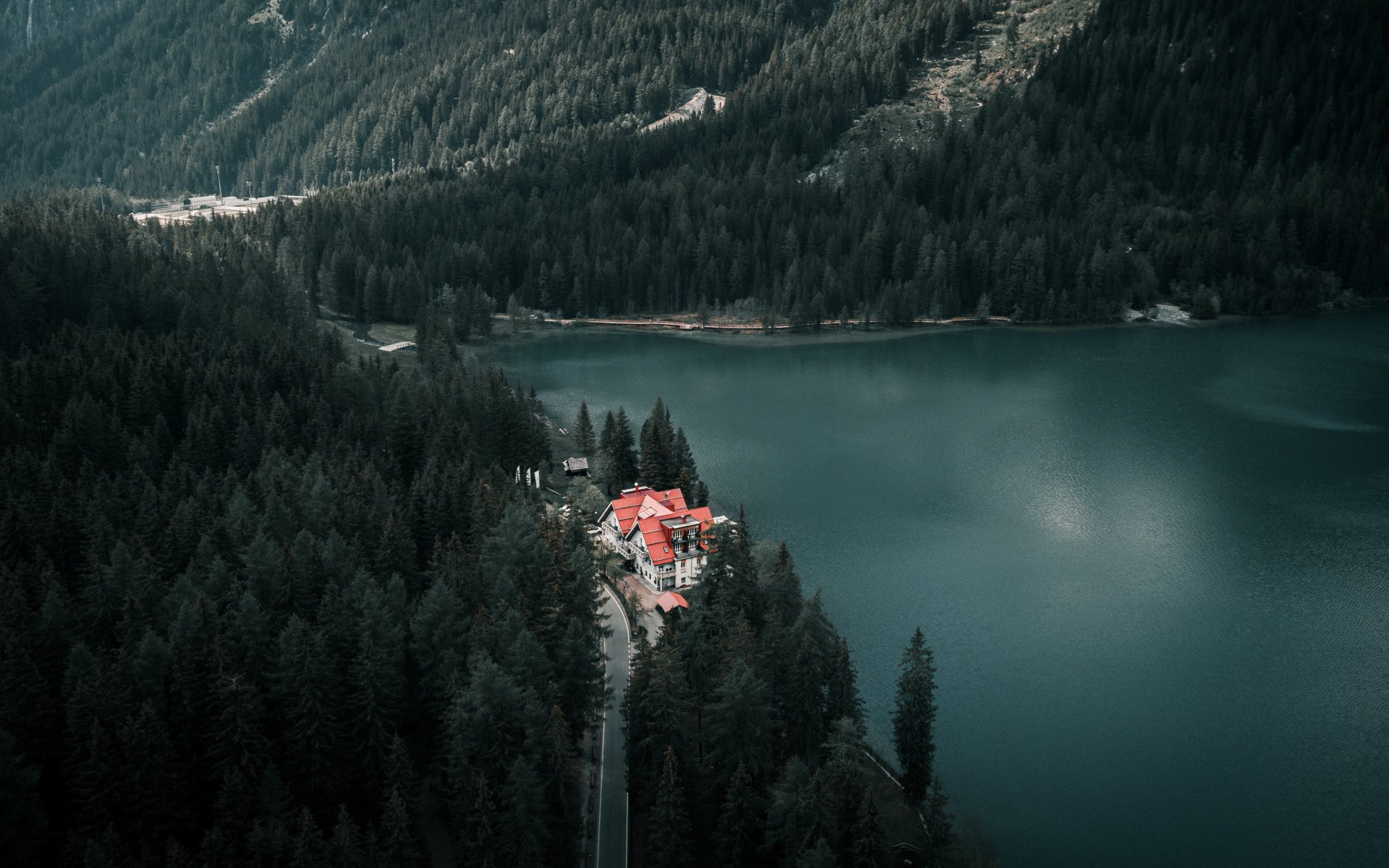 Wallpaper: lake house, bird's eye view, green - 1920x1200