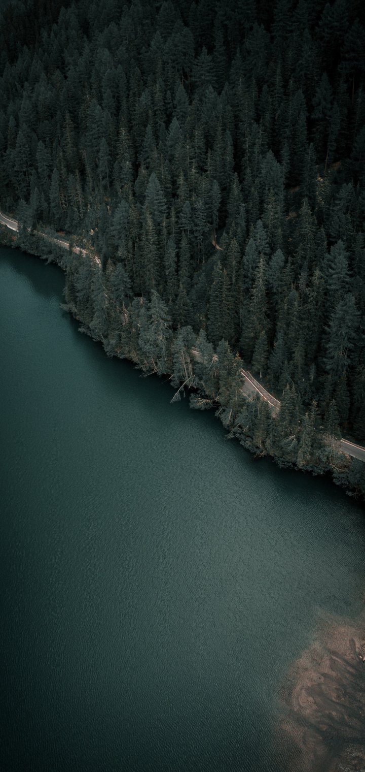 Wallpaper: dark, green, bird's eye view - 720x1520