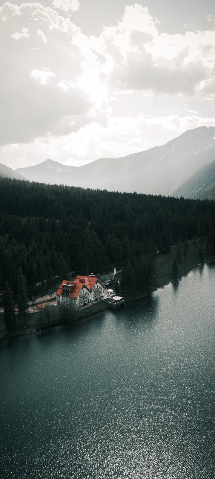 Wallpaper: lake house, bird's eye view, green - 720x1600