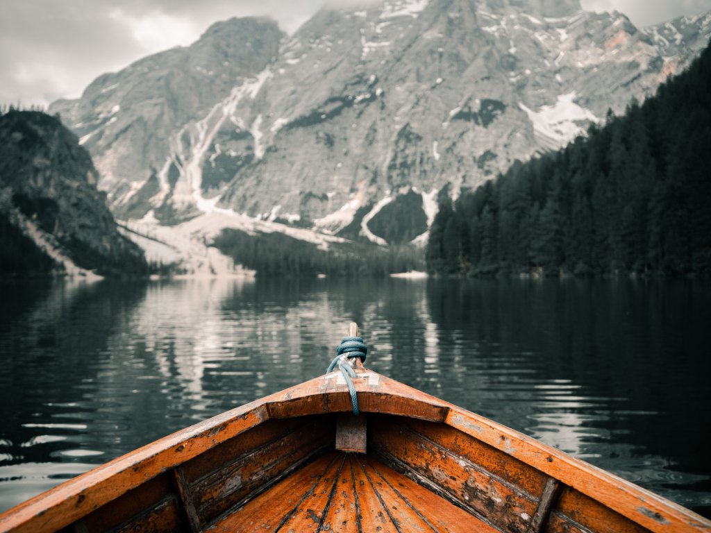 Wallpaper: Lake Braies, boat, landscape - 1024x768