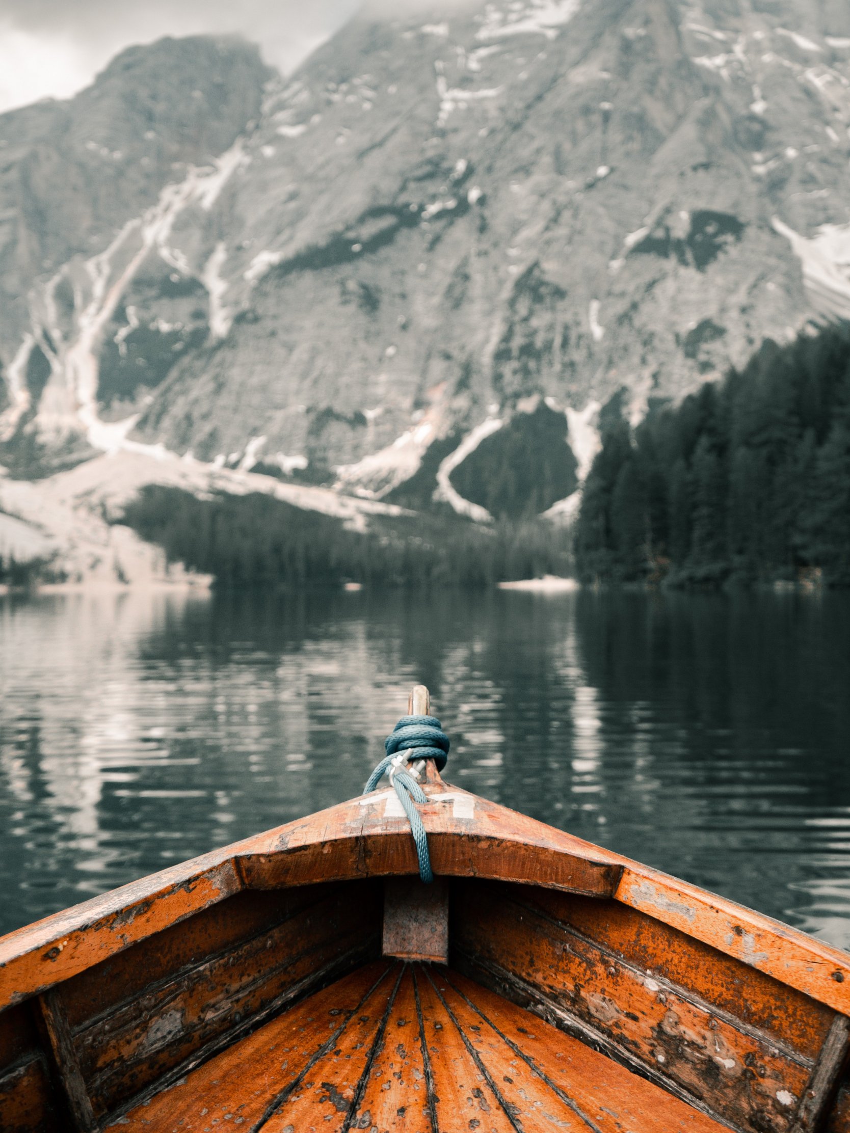 Wallpaper: Lake Braies, boat, landscape - 1668x2224