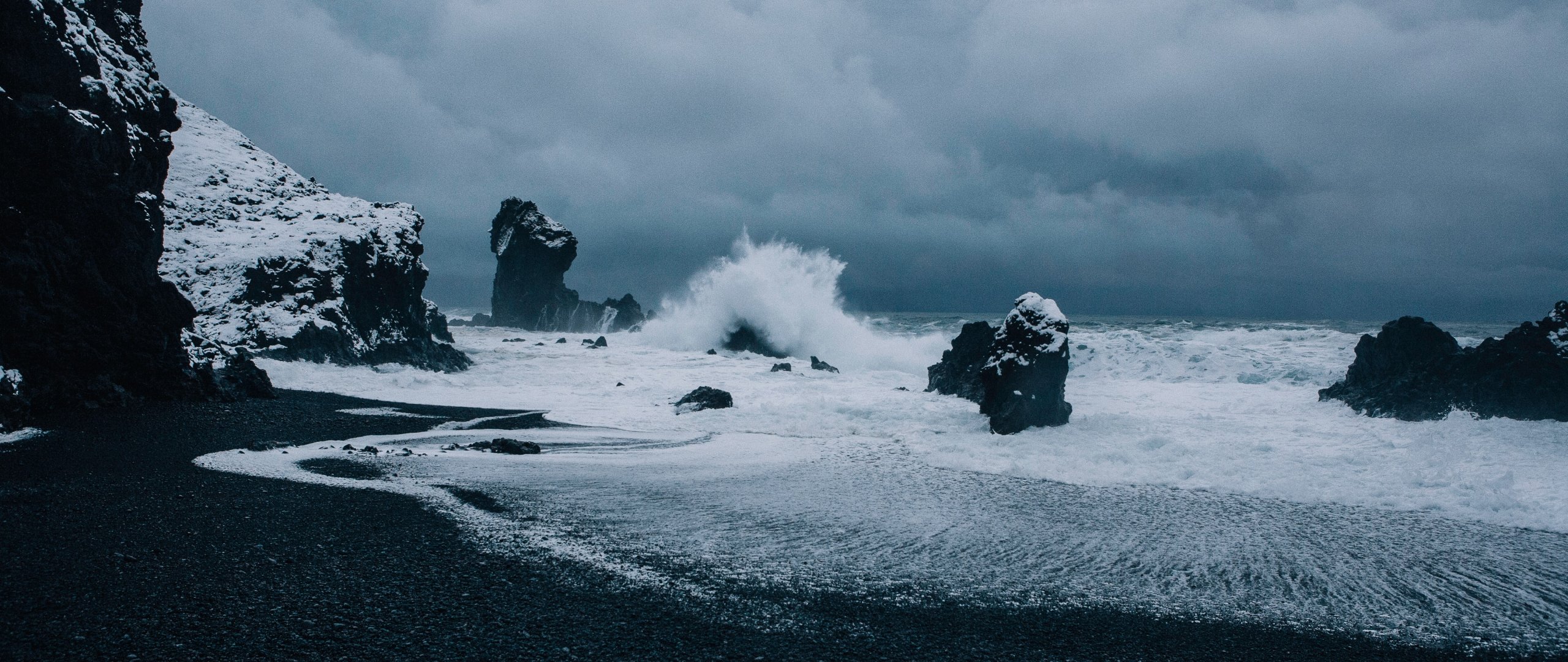 Wallpaper: Iceland, sea, waves - 2560x1080