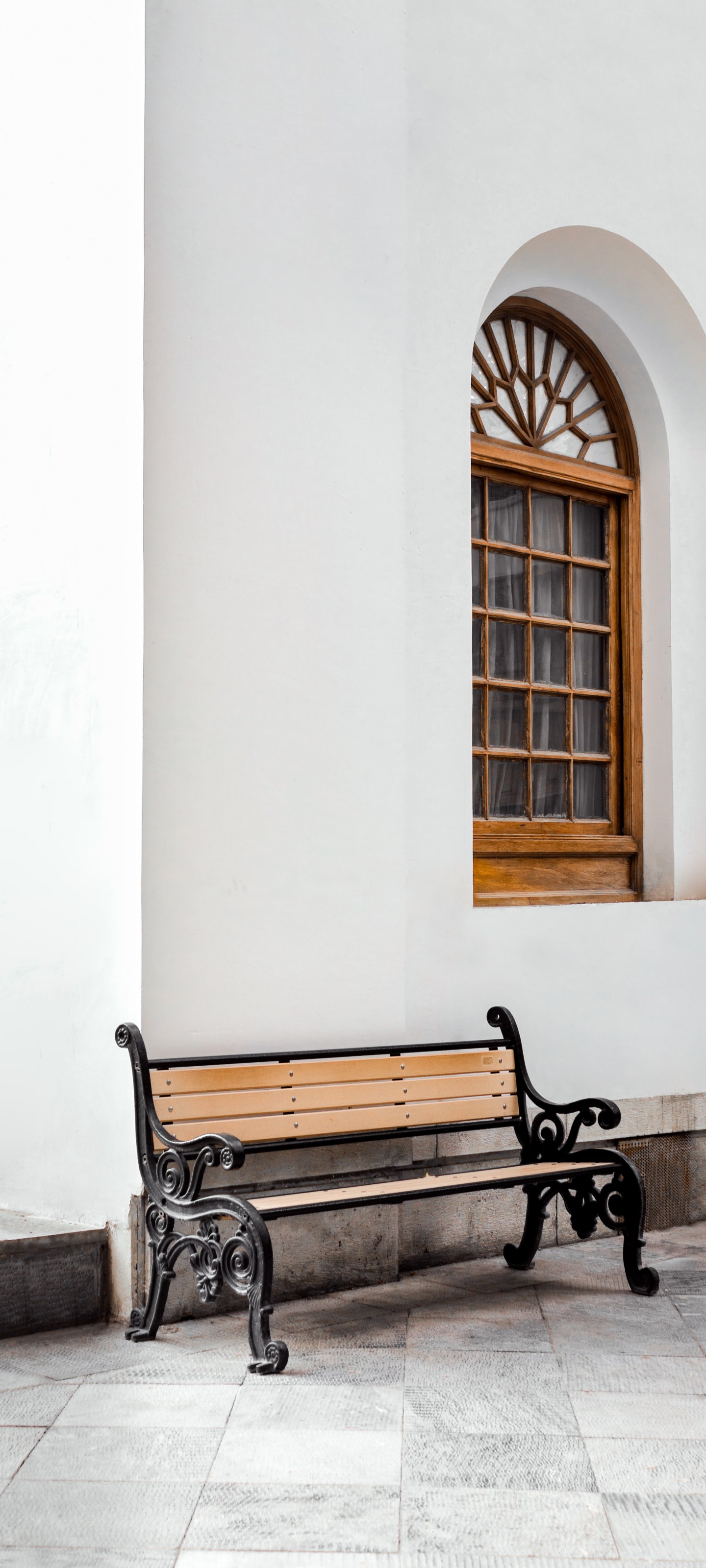 Wallpaper: bench, aesthetics of white - 1440x3200