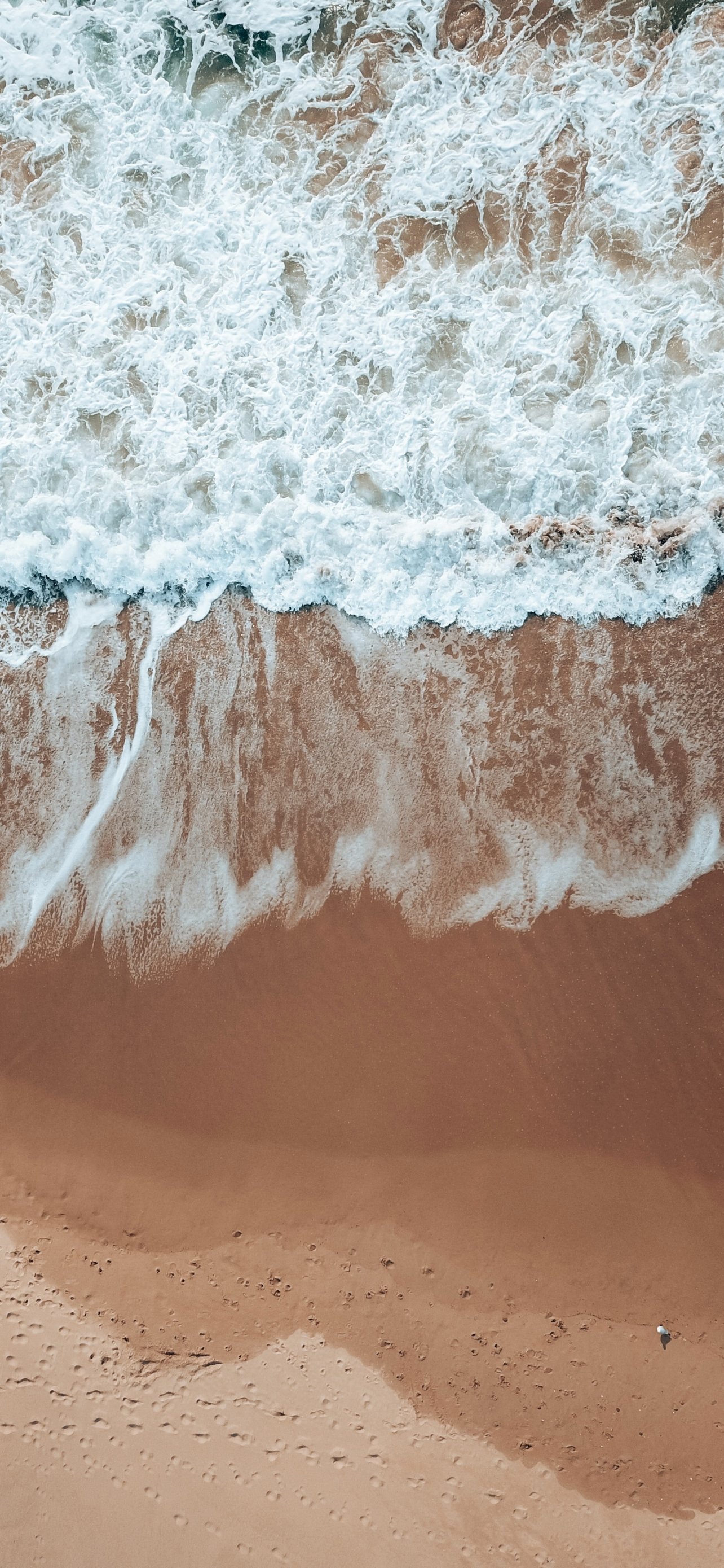 Wallpaper: top view, sea foam, beach - 1284x2778