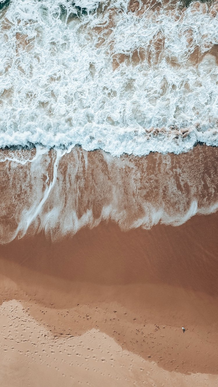 Wallpaper: top view, sea foam, beach - 750x1334