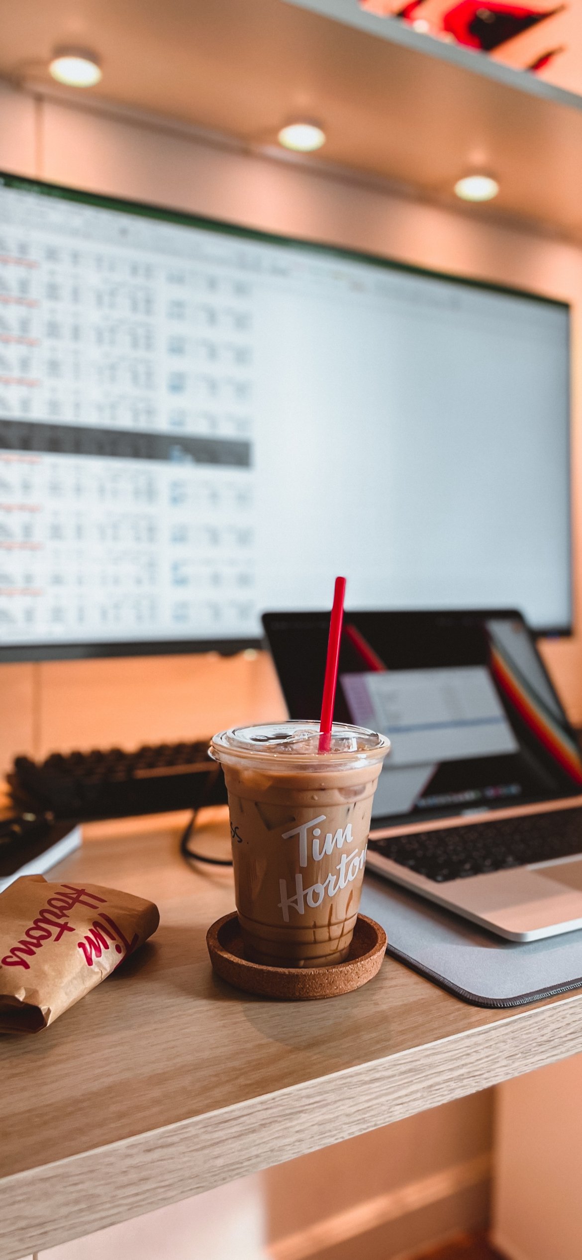 Wallpaper: interior, coffee, laptop - 1170x2532