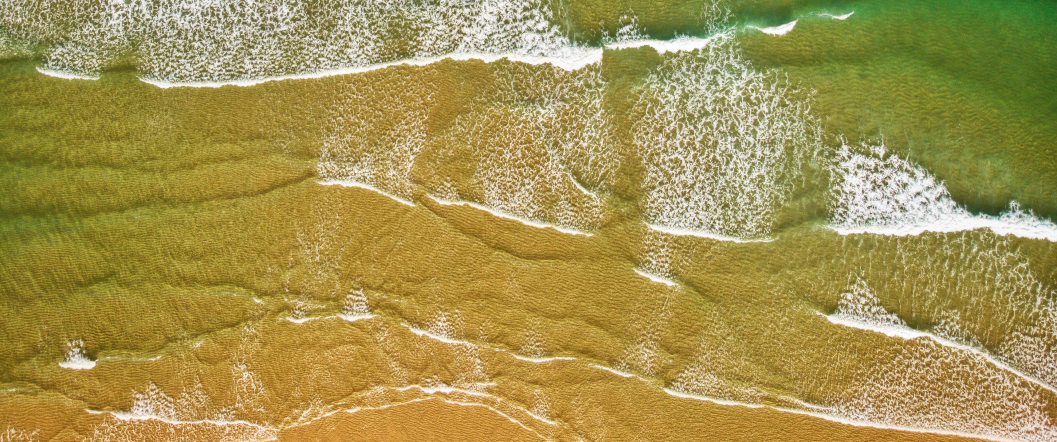 Wallpaper: top view, sea, beach - 3440x1440