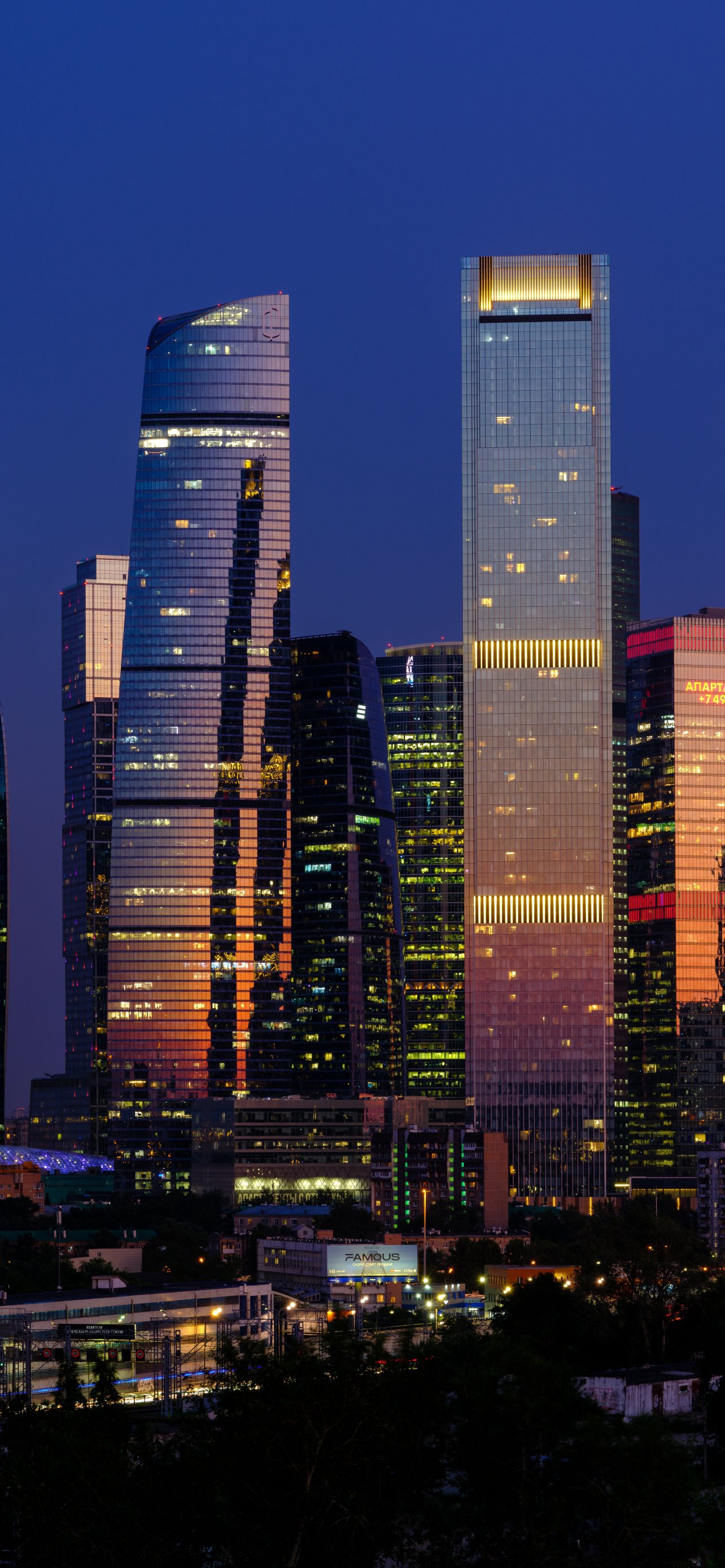 Wallpaper: Moscow City, skyscrapers, night - 1284x2778