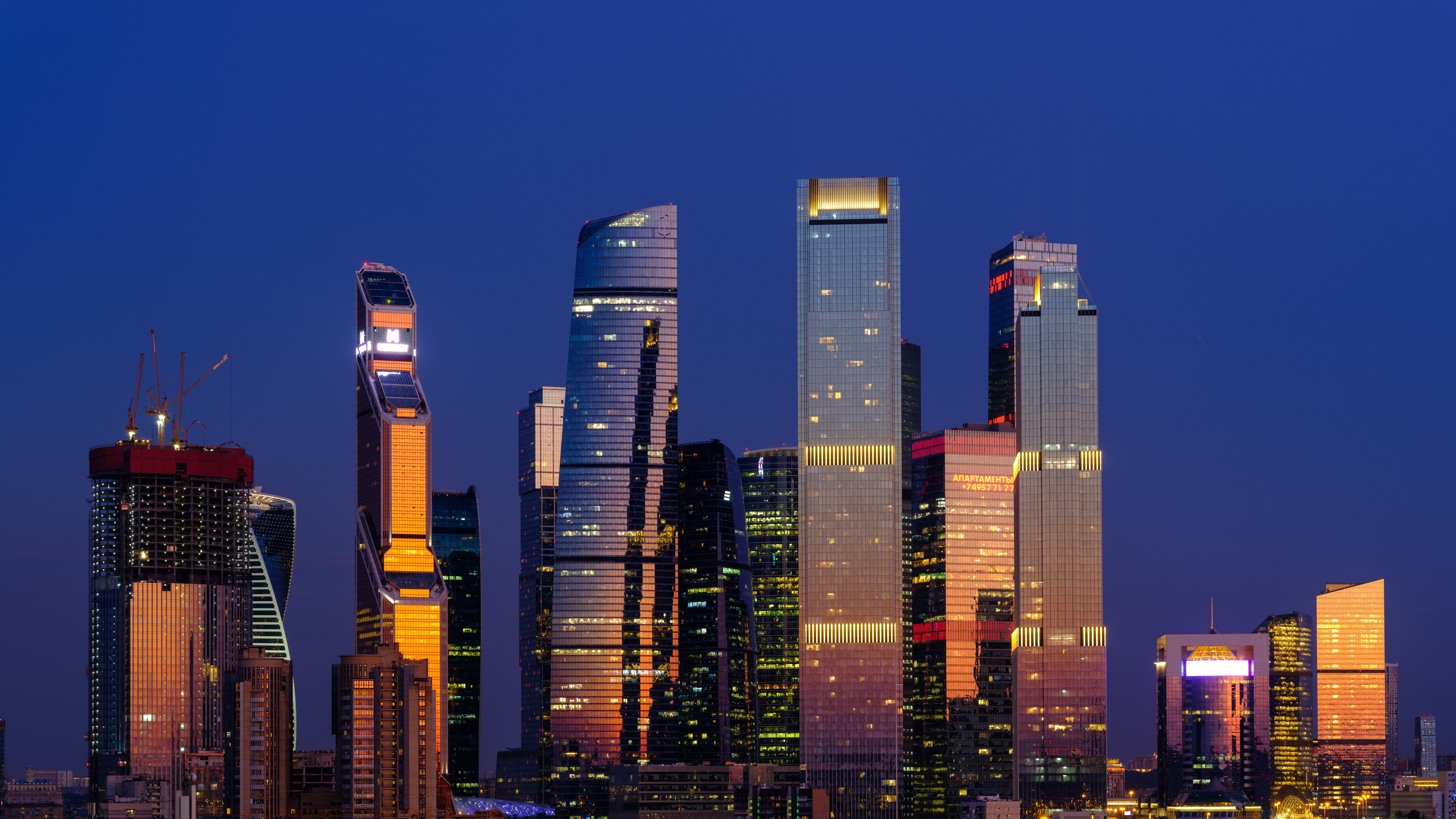 Wallpaper: Moscow City, skyscrapers, night - 7680x4320