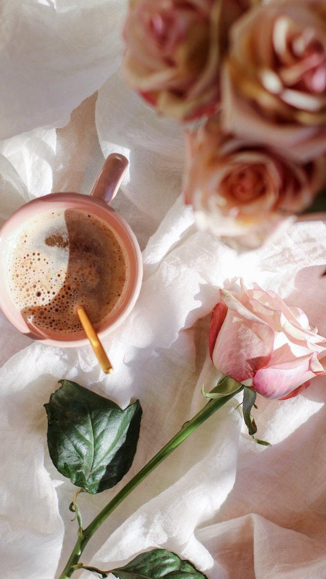 Wallpaper: coffee cup, aesthetic pink - 640x1136