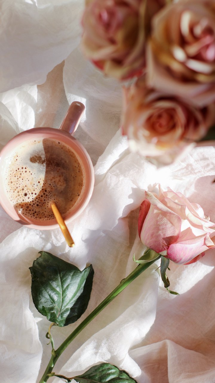 Wallpaper: coffee cup, aesthetic pink - 720x1280