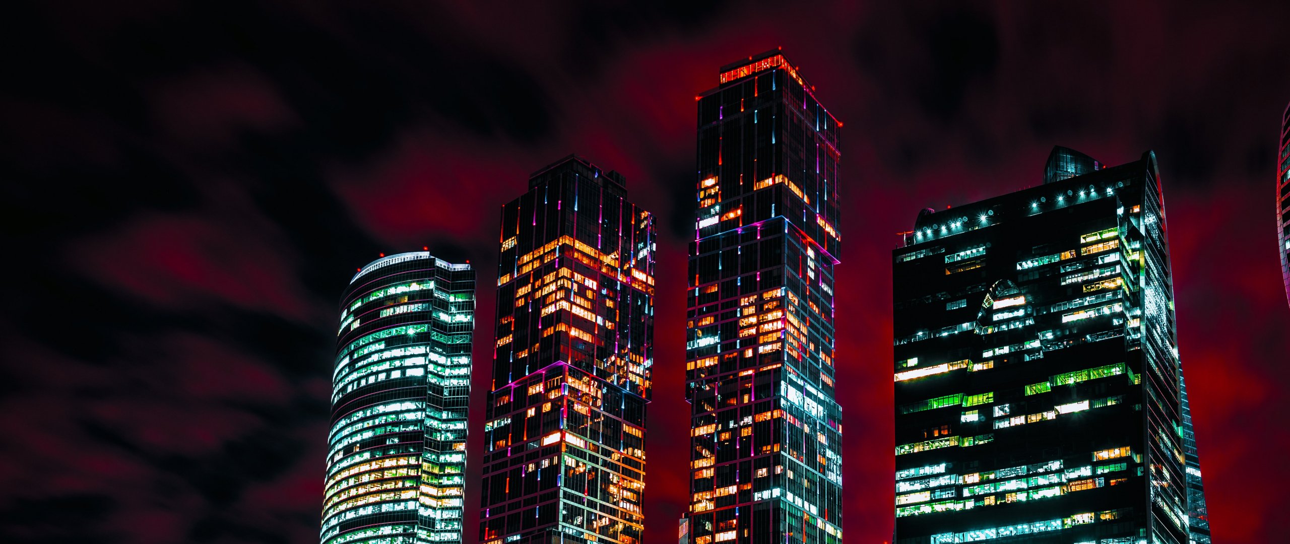 Wallpaper: Moscow City, skyscrapers, night - 2560x1080