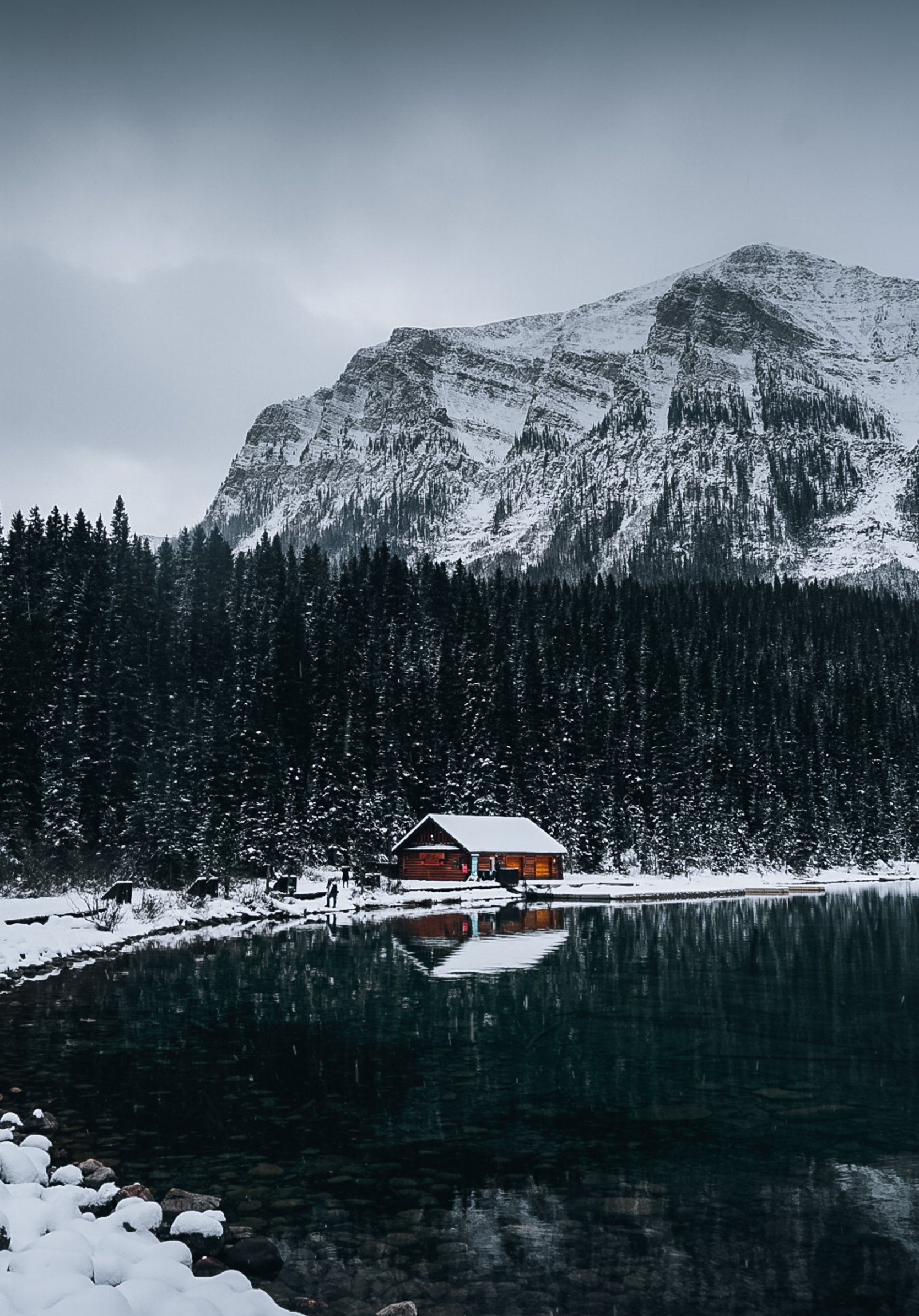 Wallpaper: lake house, snow, winter - 1668x2388