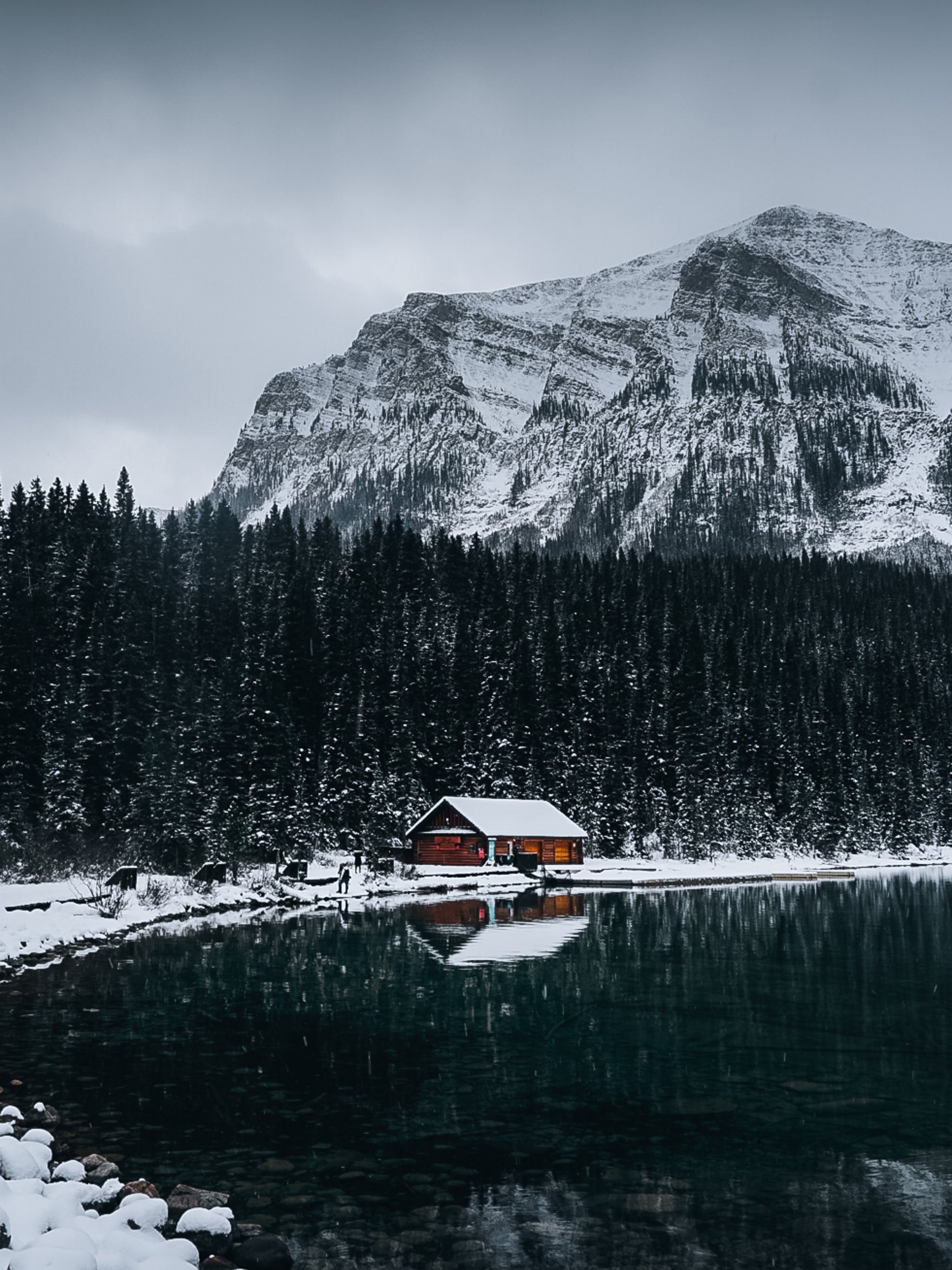 Wallpaper: lake house, snow, winter - 2048x2732