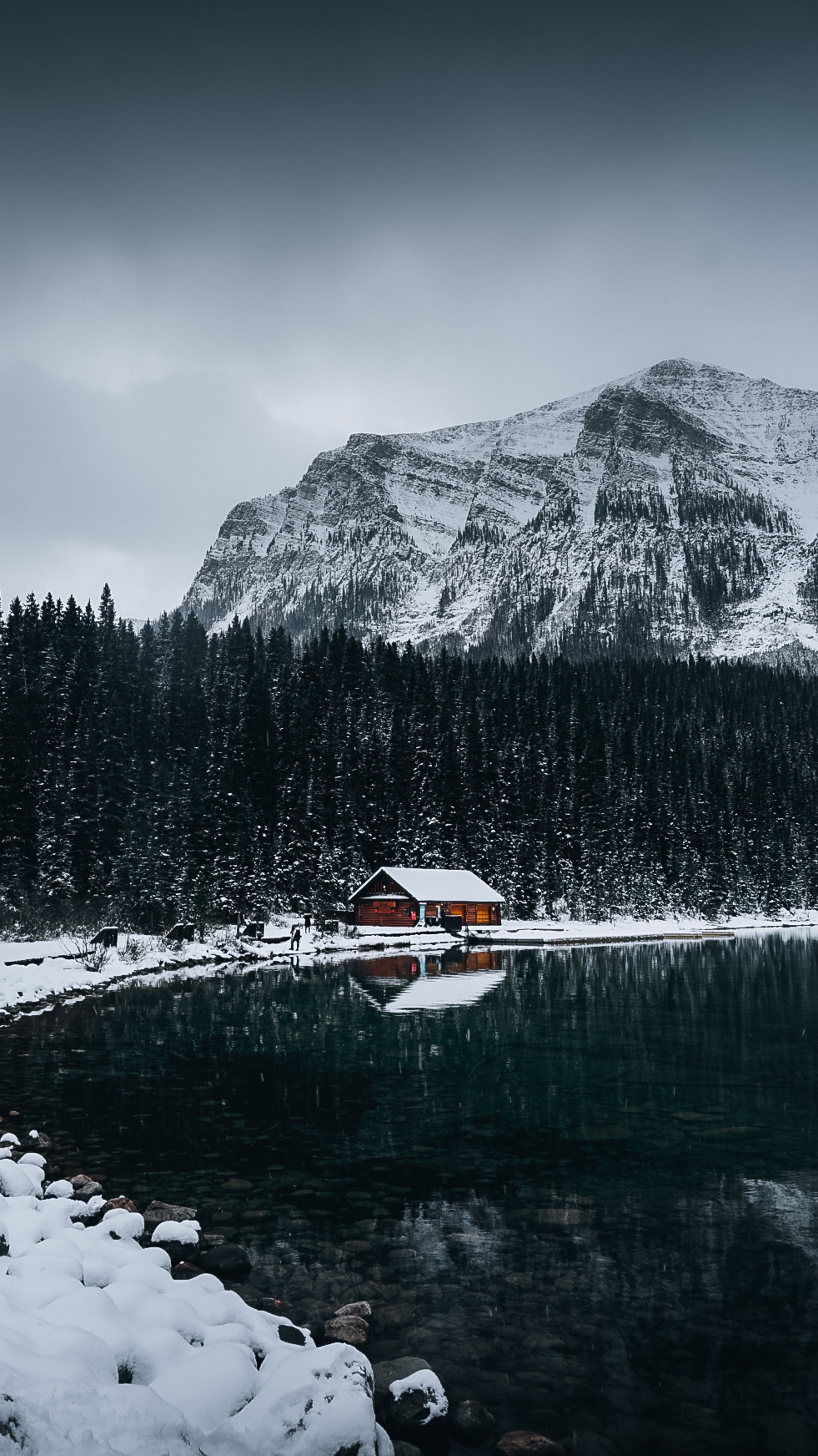 Wallpaper: lake house, snow, winter - 2160x3840