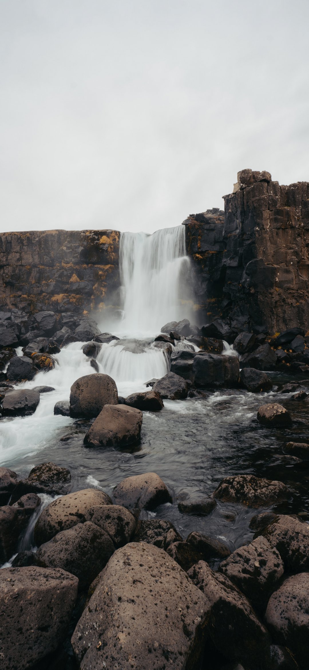 Wallpaper: Iceland, waterfall, stones - 1080x2340